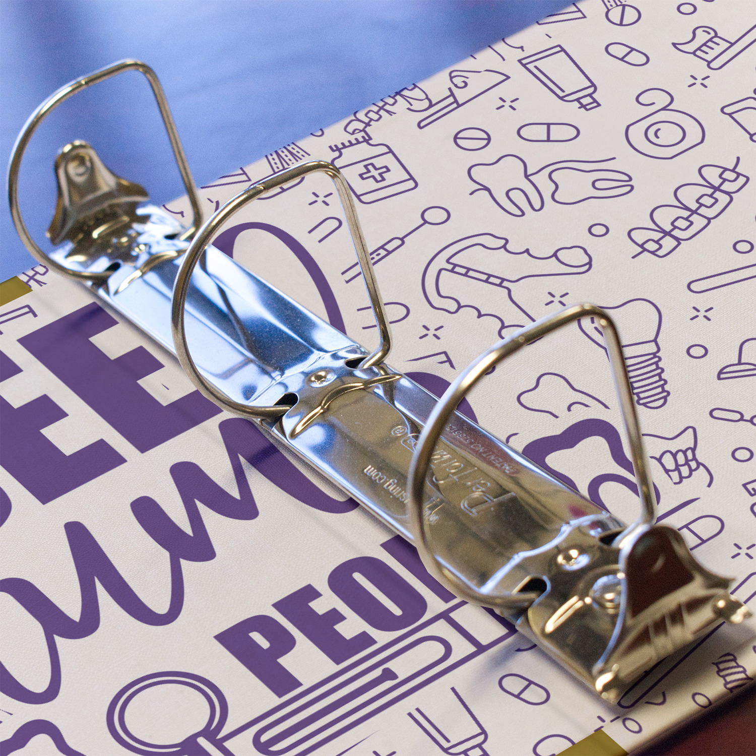 Made from a sturdy cardboard base with a full high quality canvas textured vinyl wrap with the design of your choice. Unlike our standard 3-ring binder with the full wrap design your artwork wraps from the front and back and into the inside of the binder.