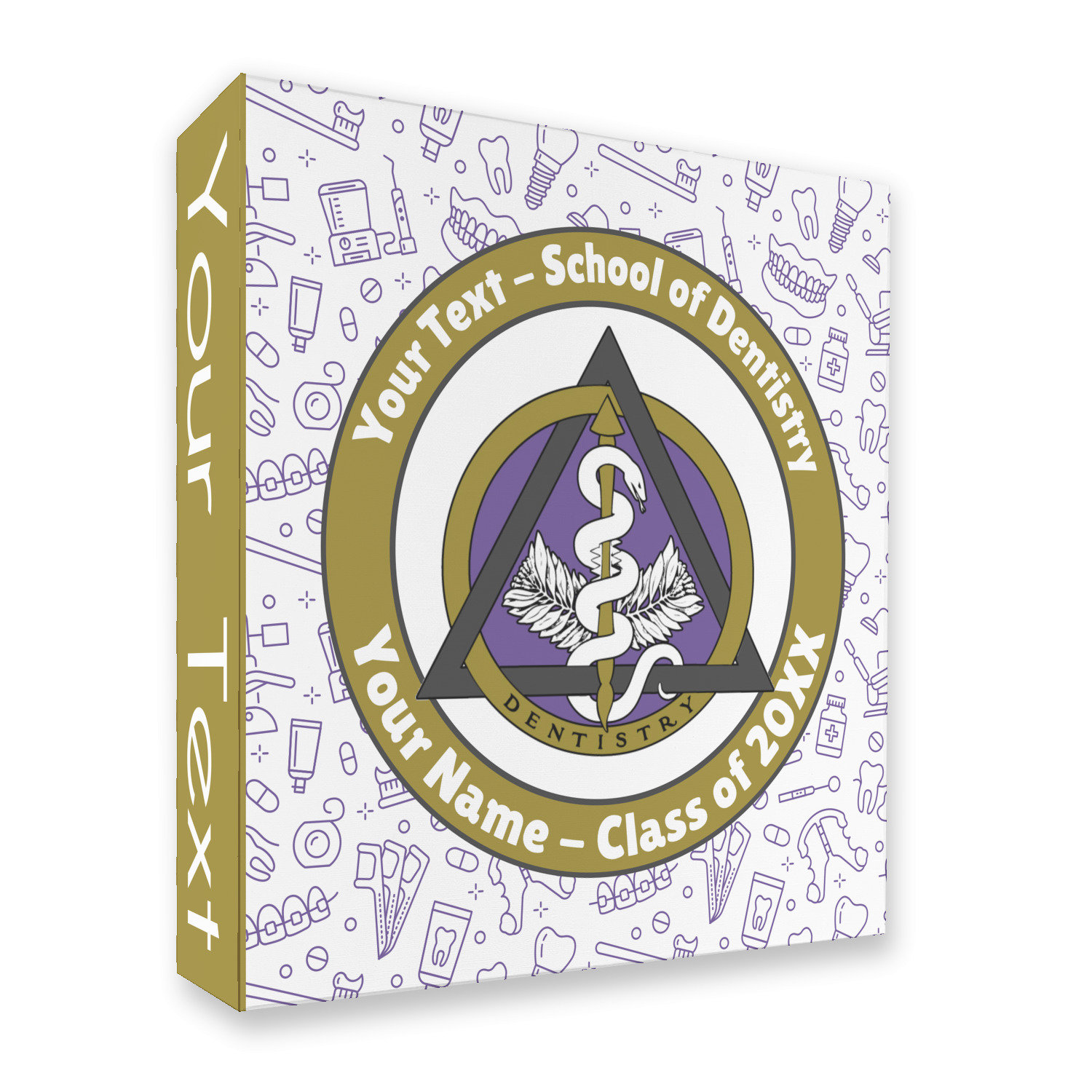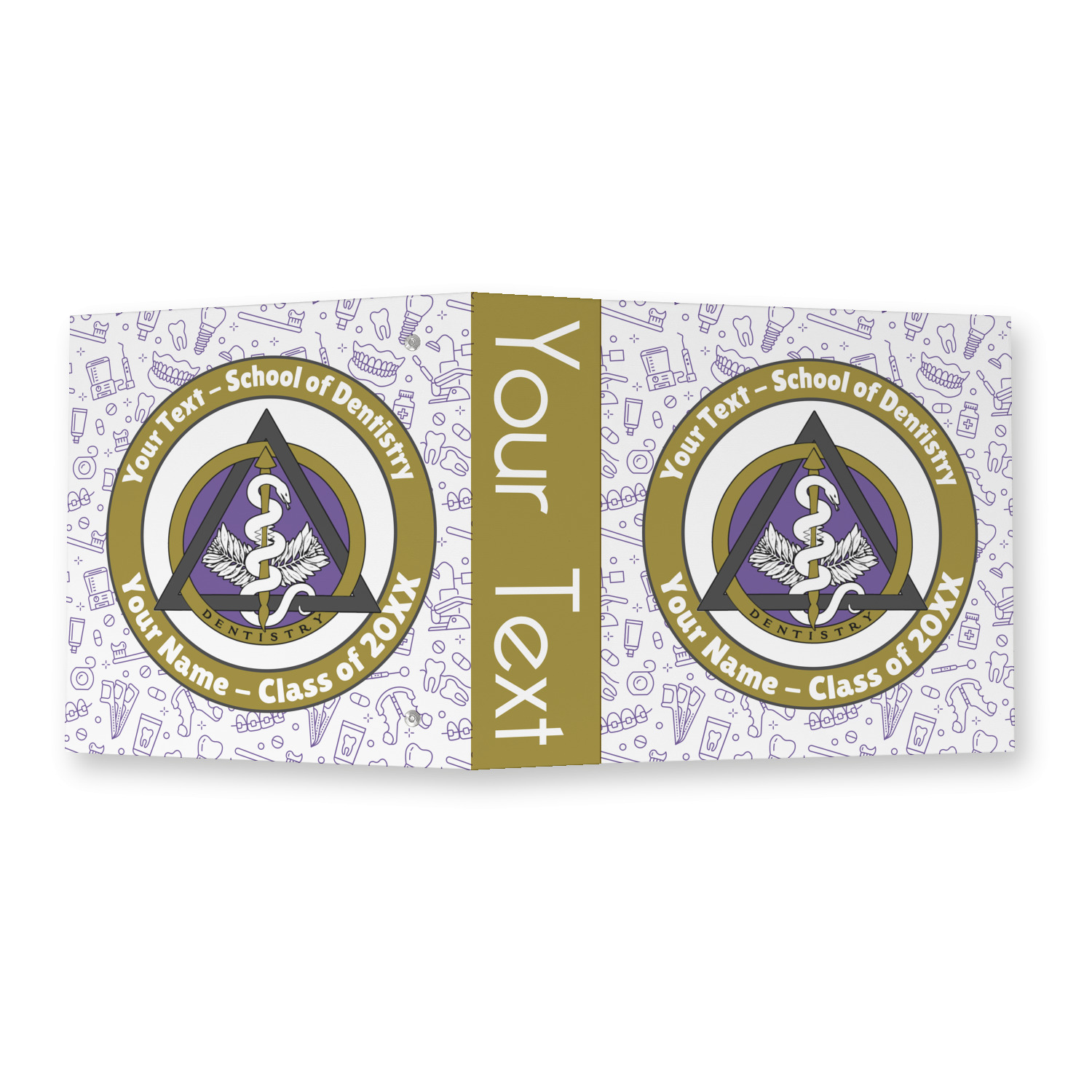 This design features the dental insignia (aka emblem, symbol, logo) at the center with personalization in a circle around the emblem.You can customize the name of the dental school, as well as the name of the dentist and the year they graduated.