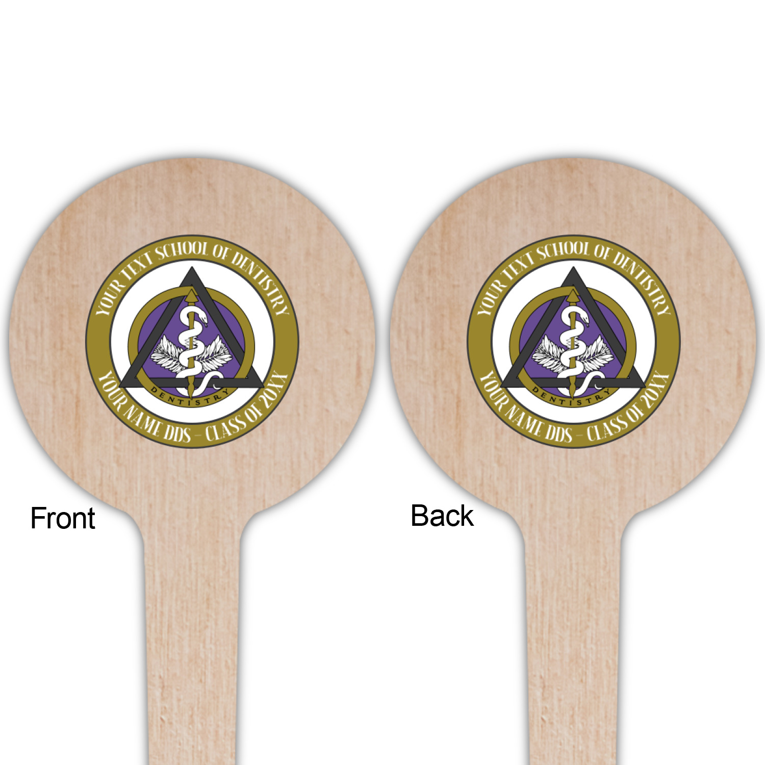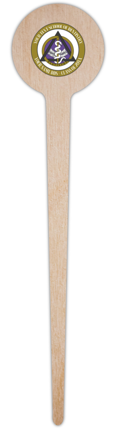 This design features the dental insignia (aka emblem, symbol, logo) at the center with personalization in a circle around the emblem.You can customize the name of the dental school, as well as the name of the dentist and the year they graduated.