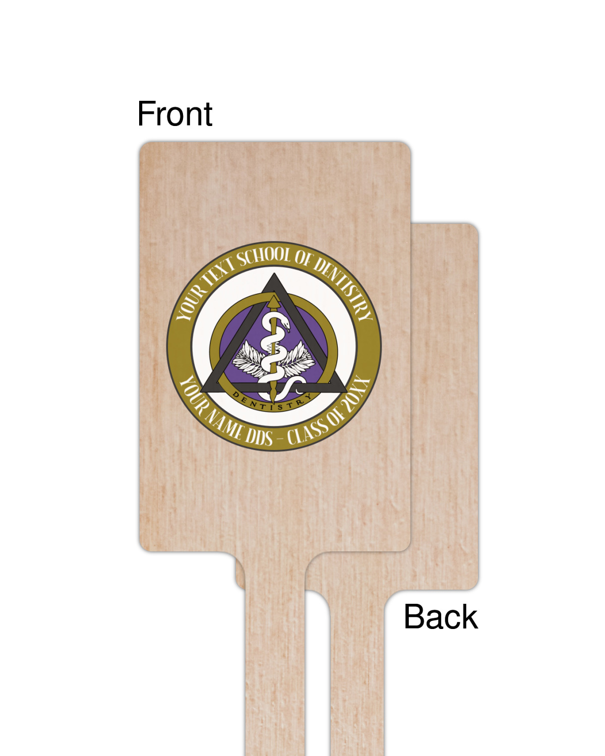 This design features the dental insignia (aka emblem, symbol, logo) at the center with personalization in a circle around the emblem.You can customize the name of the dental school, as well as the name of the dentist and the year they graduated.