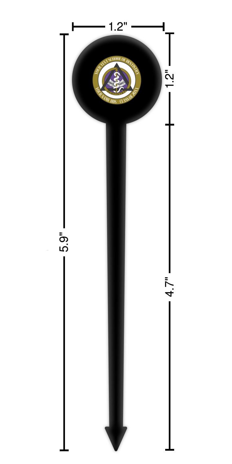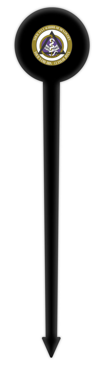 This design features the dental insignia (aka emblem, symbol, logo) at the center with personalization in a circle around the emblem.You can customize the name of the dental school, as well as the name of the dentist and the year they graduated.