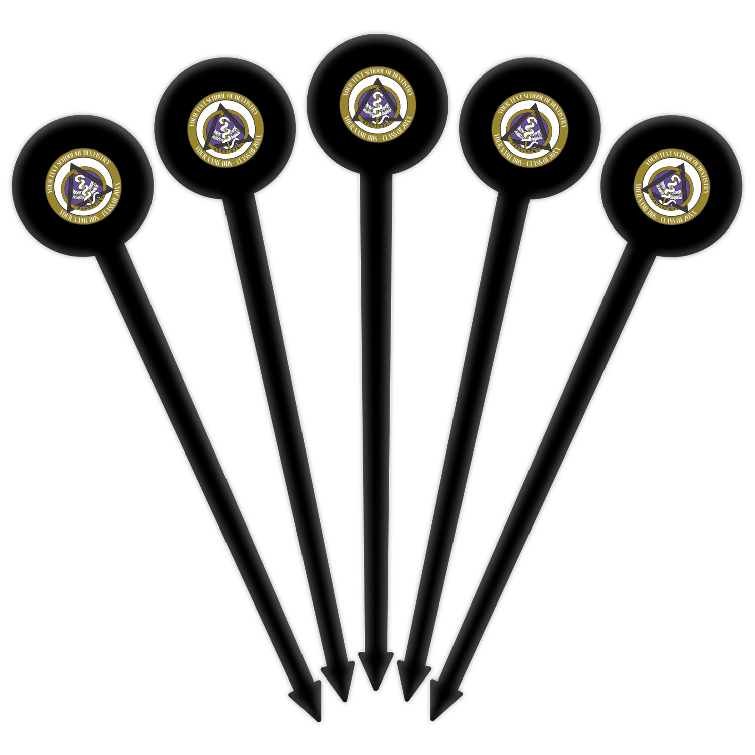 The round disc on these food & drink picks can be customized and personalized to your specifications. Your image will be printed in full color on one side or both sides. You can use the same image on both sides or use two different images.