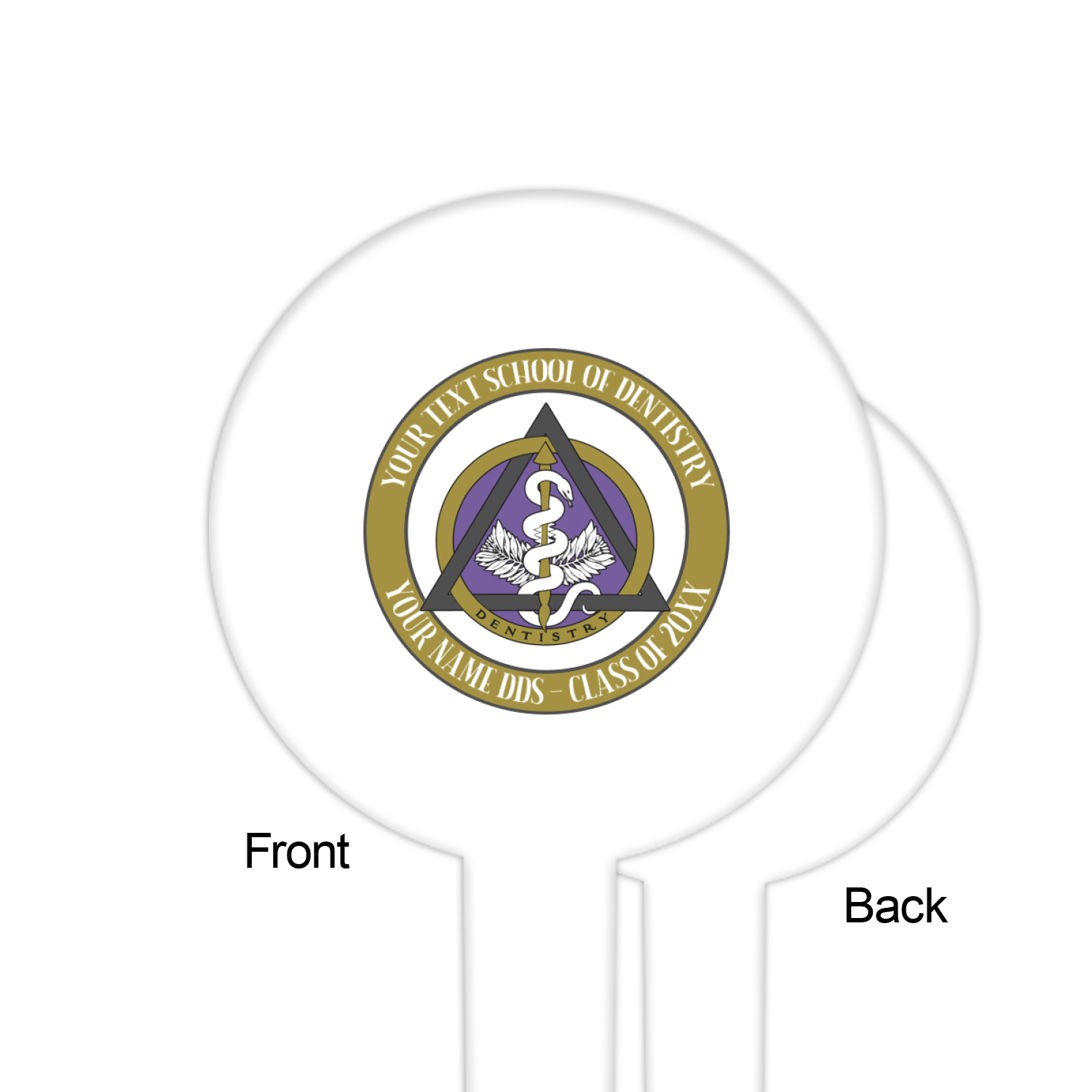 This design features the dental insignia (aka emblem, symbol, logo) at the center with personalization in a circle around the emblem.You can customize the name of the dental school, as well as the name of the dentist and the year they graduated.