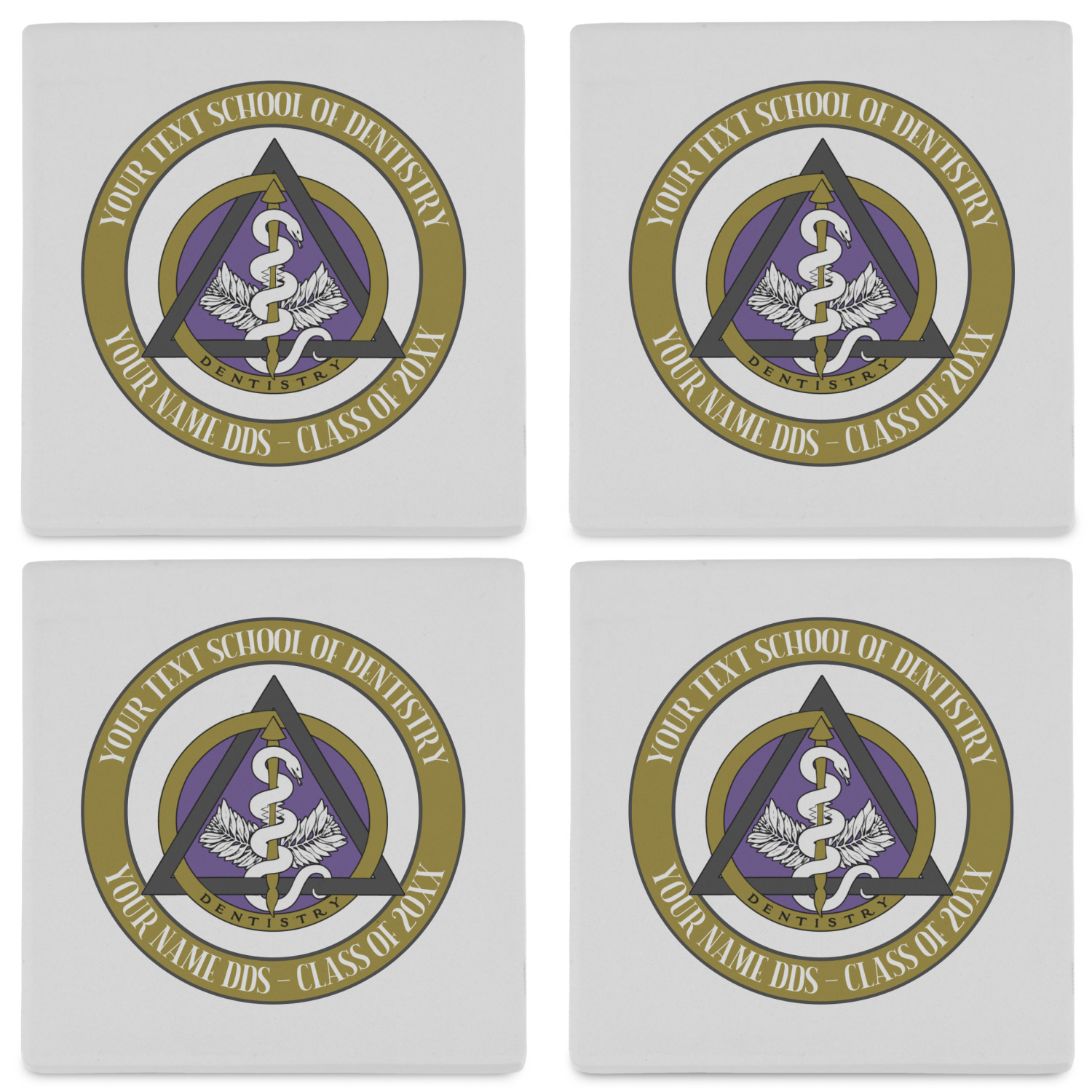 This design features the dental insignia (aka emblem, symbol, logo) at the center with personalization in a circle around the emblem.You can customize the name of the dental school, as well as the name of the dentist and the year they graduated.