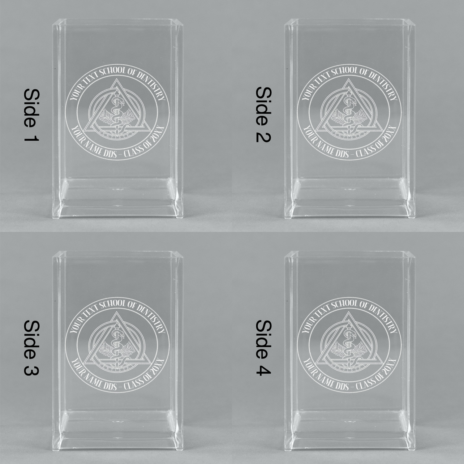 Add a great accessory to your desk with one of these acrylic pen holders. A great way to store your writing utensils, and personalized to suit your needs.