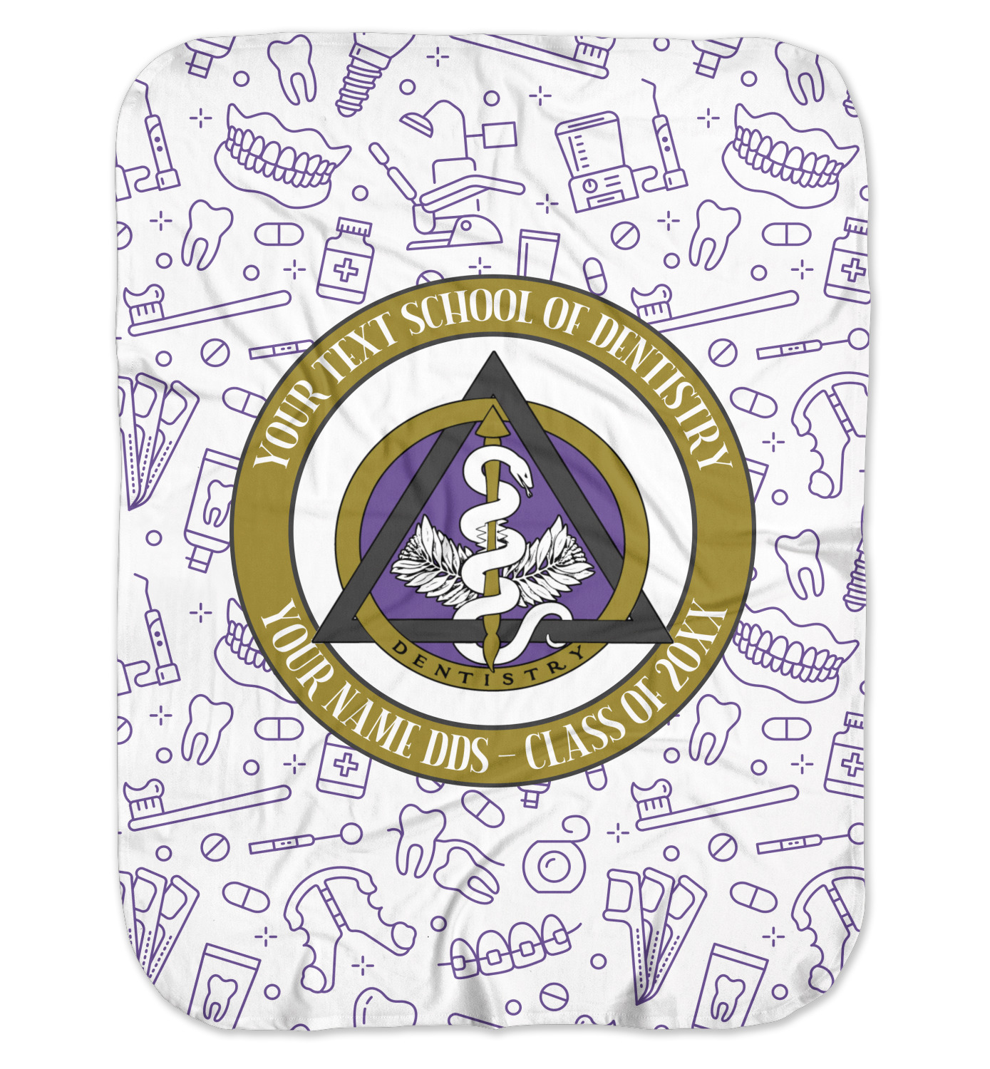 This design features the dental insignia (aka emblem, symbol, logo) at the center with personalization in a circle around the emblem.You can customize the name of the dental school, as well as the name of the dentist and the year they graduated.