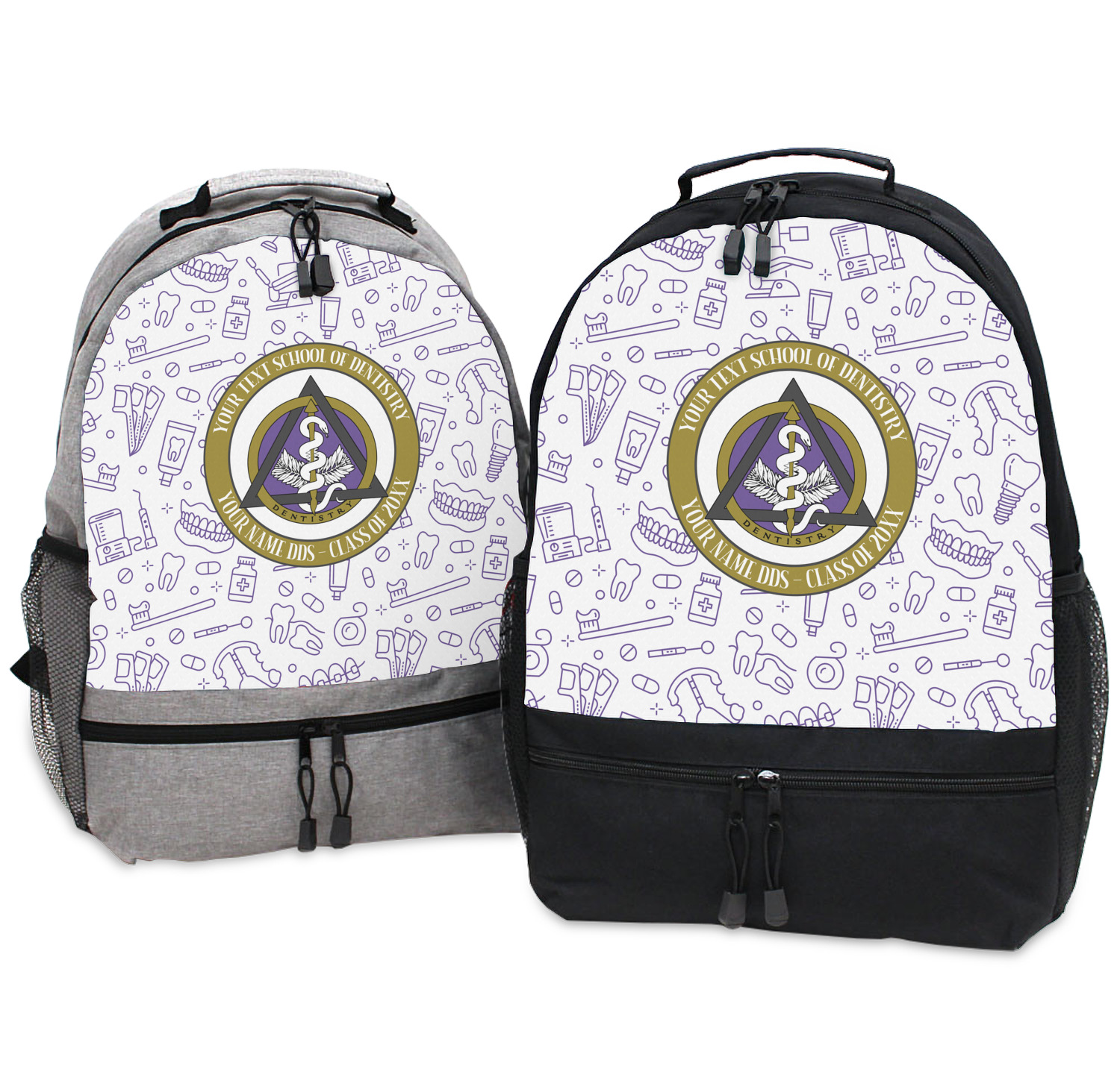 This design features the dental insignia (aka emblem, symbol, logo) at the center with personalization in a circle around the emblem.You can customize the name of the dental school, as well as the name of the dentist and the year they graduated.