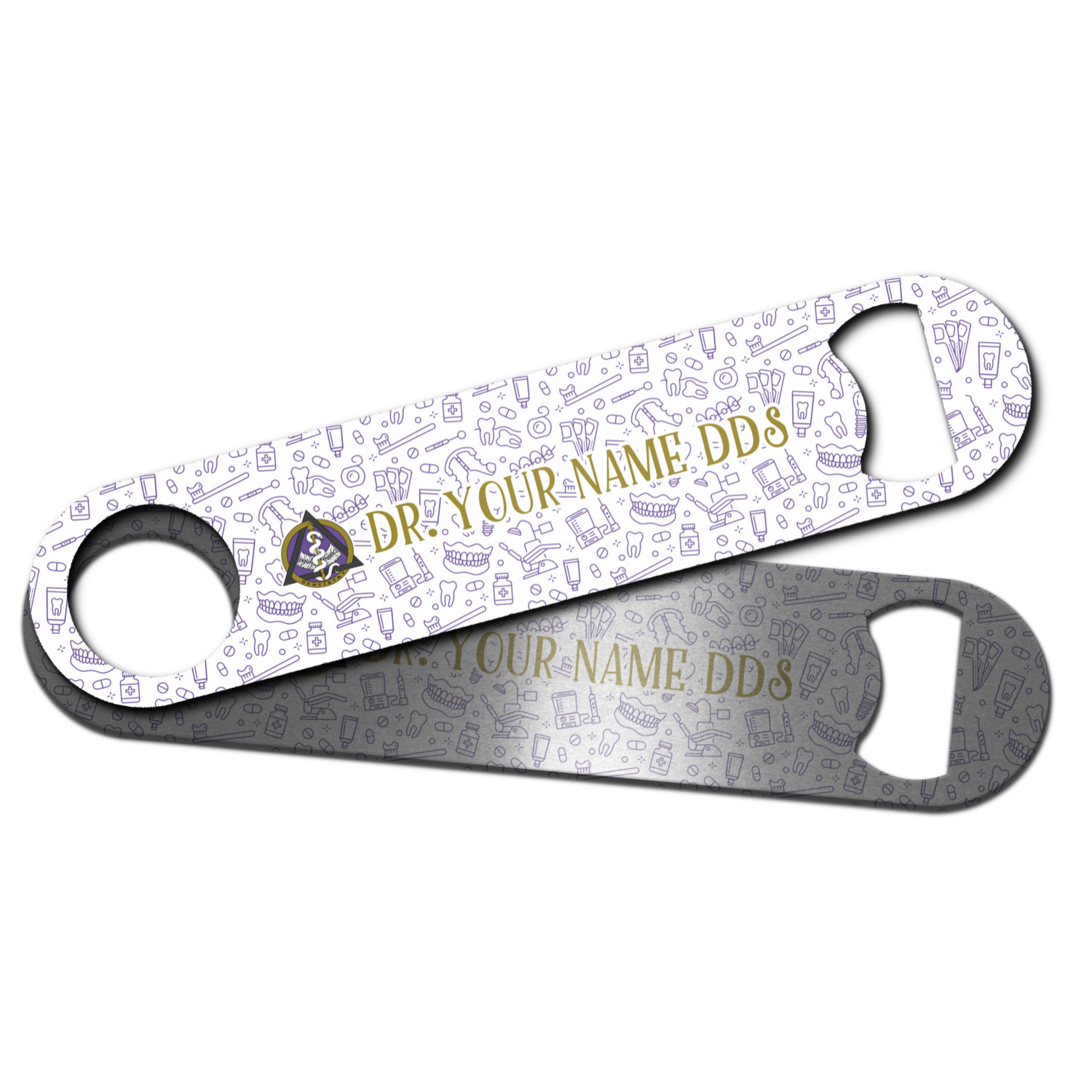 Stop struggling with the caps or your bottled beverages by purchasing one of our personalized bottle openers! These wrench-like custom bar blades are built to last. Customize one for your home's bar, or as a practical gift for a loved one!