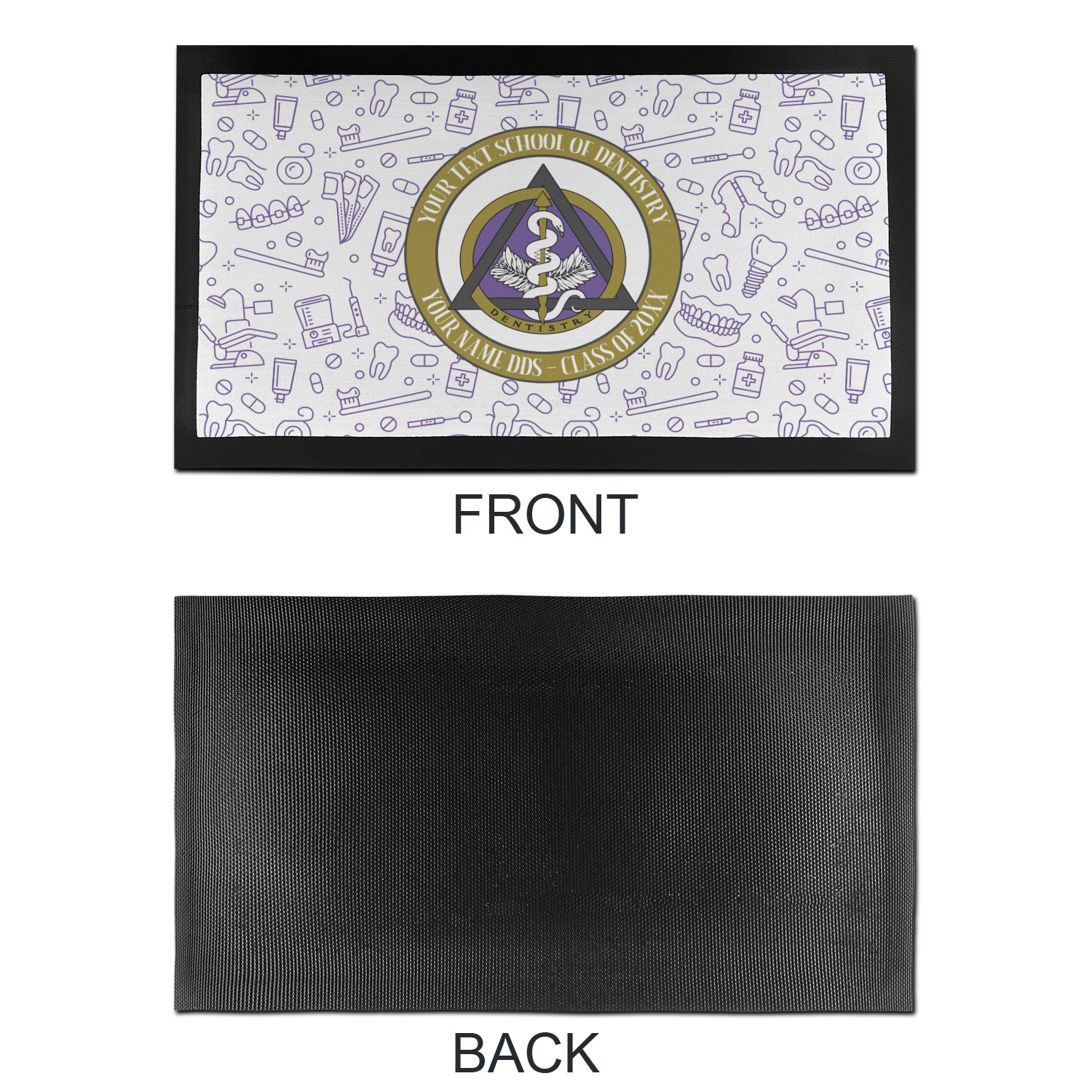 This design features the dental insignia (aka emblem, symbol, logo) at the center with personalization in a circle around the emblem.You can customize the name of the dental school, as well as the name of the dentist and the year they graduated.