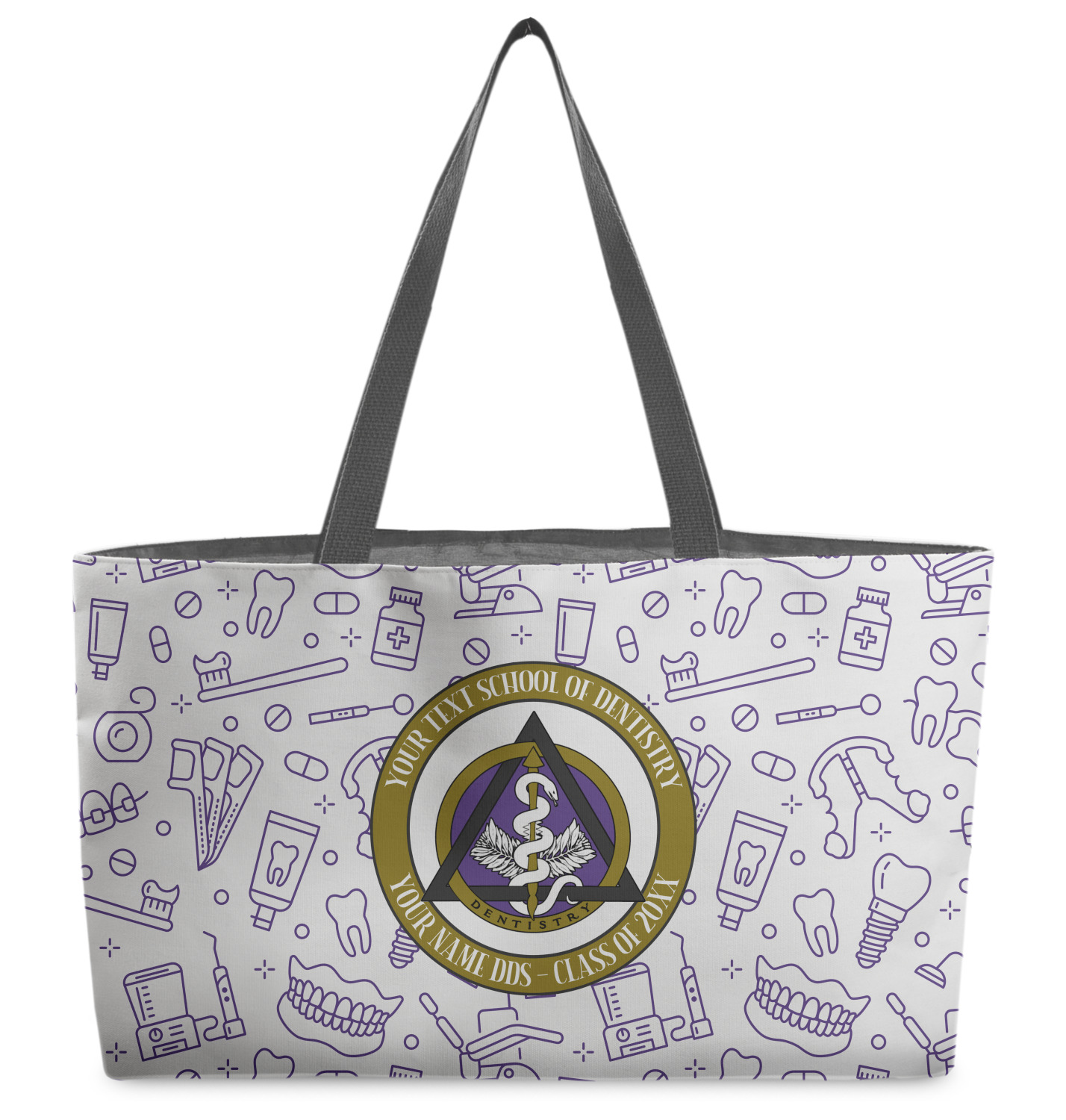 This design features the dental insignia (aka emblem, symbol, logo) at the center with personalization in a circle around the emblem.You can customize the name of the dental school, as well as the name of the dentist and the year they graduated.