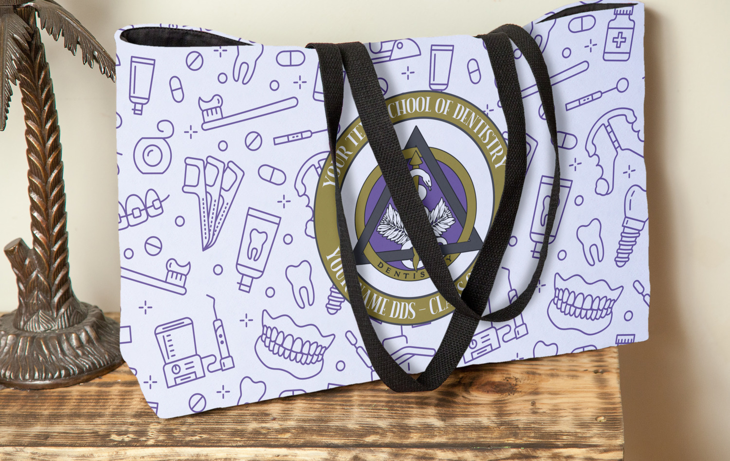 We chose to accent the background with the color lilac from the official dental insignia because lilac conveys compassion, purpose and inspiration AND Dental graduates today incorporate purple on their caps and gowns.