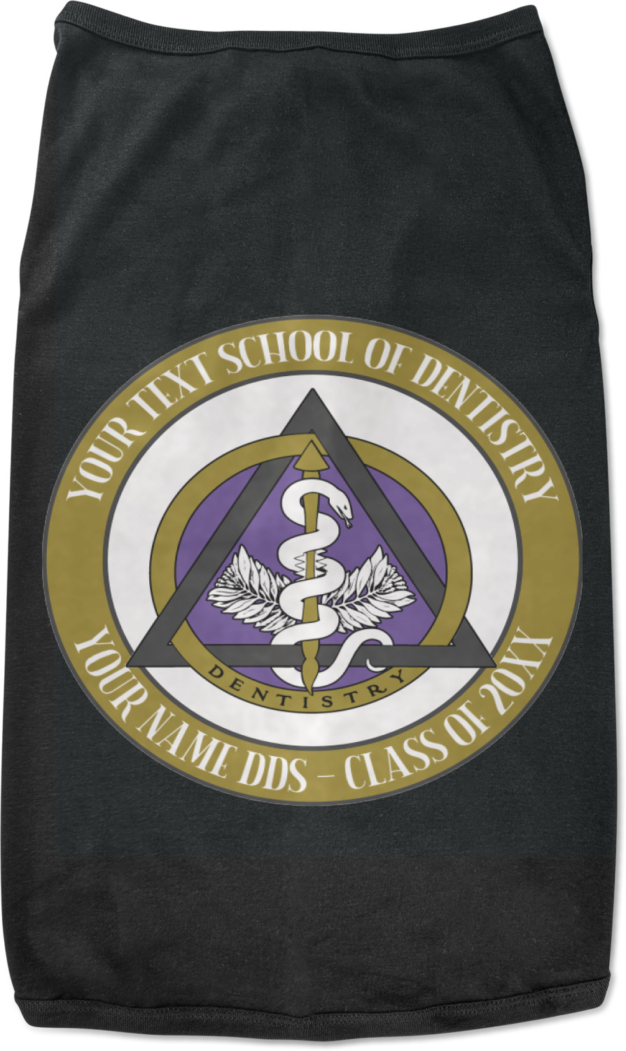 This design features the dental insignia (aka emblem, symbol, logo) at the center with personalization in a circle around the emblem.You can customize the name of the dental school, as well as the name of the dentist and the year they graduated.