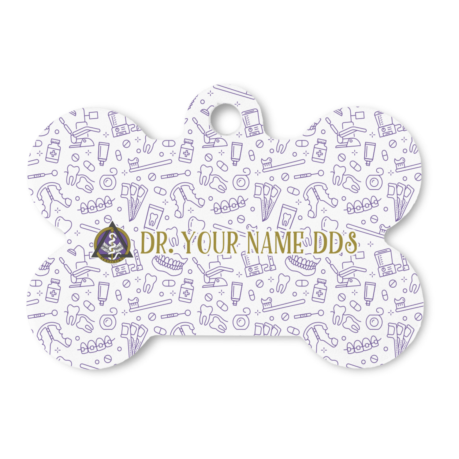 This design features the dental insignia (aka emblem, symbol, logo) at the center with personalization in a circle around the emblem.You can customize the name of the dental school, as well as the name of the dentist and the year they graduated.
