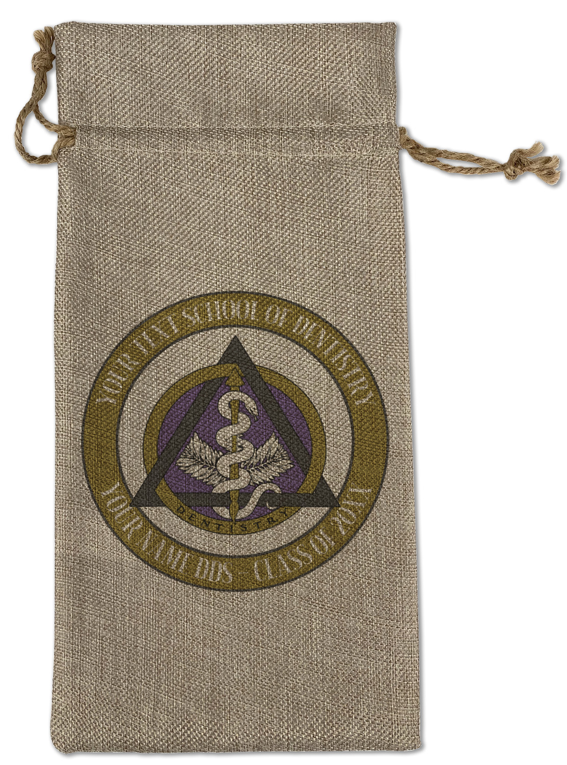 This design features the dental insignia (aka emblem, symbol, logo) at the center with personalization in a circle around the emblem.You can customize the name of the dental school, as well as the name of the dentist and the year they graduated.
