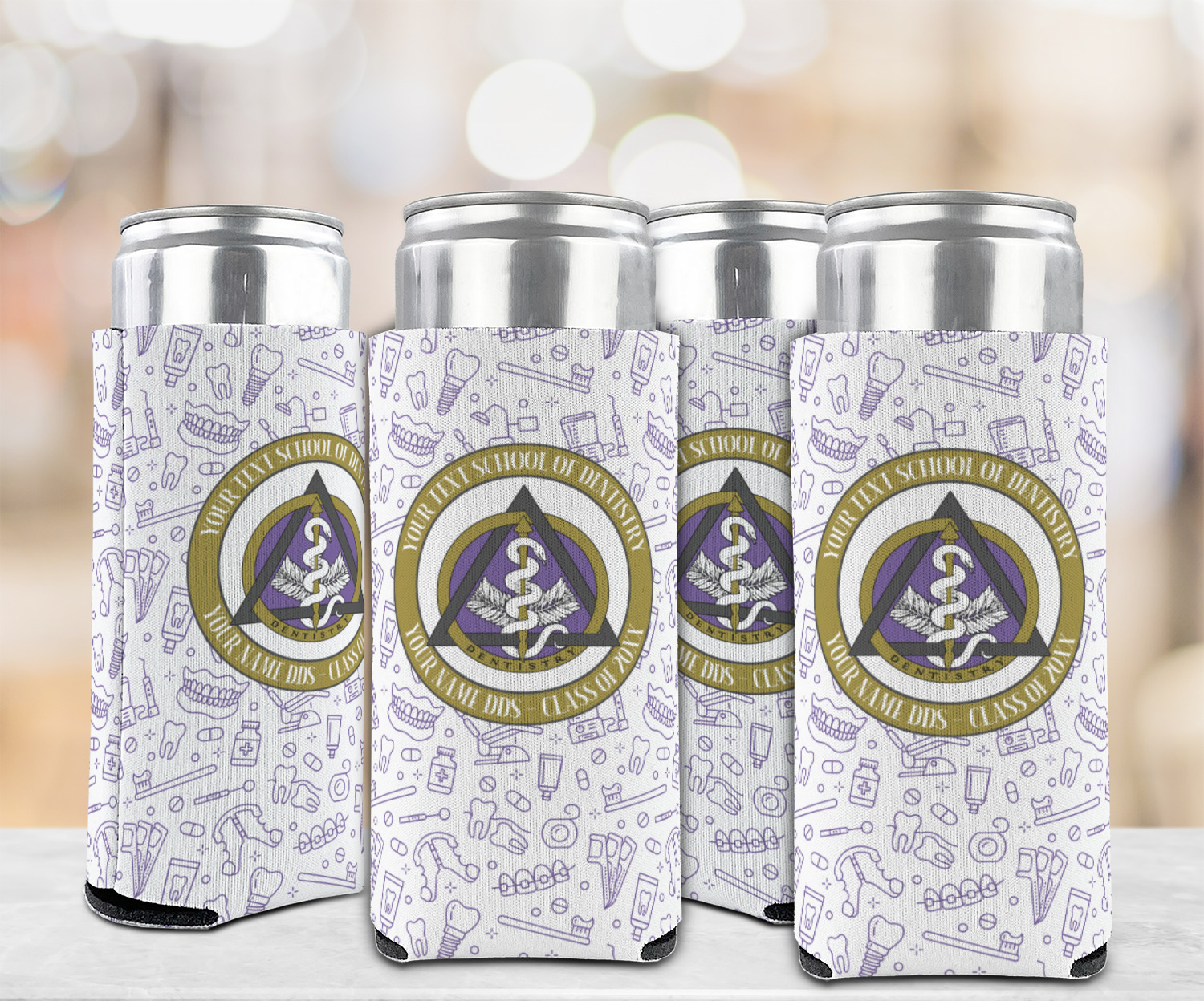 This design features the dental insignia (aka emblem, symbol, logo) at the center with personalization in a circle around the emblem.You can customize the name of the dental school, as well as the name of the dentist and the year they graduated.