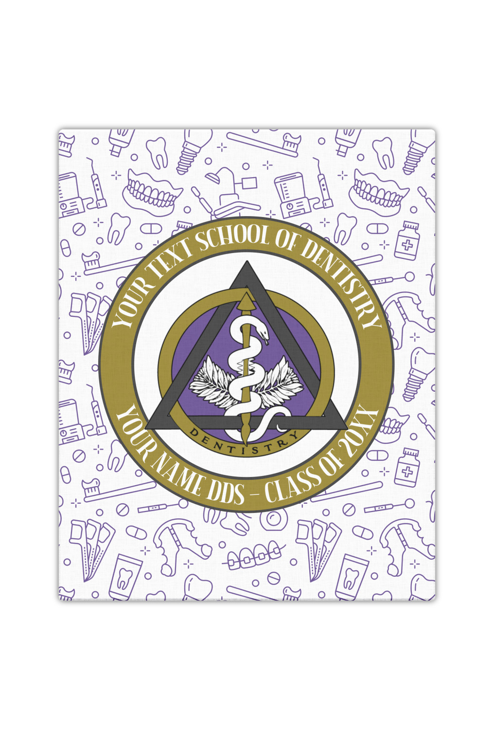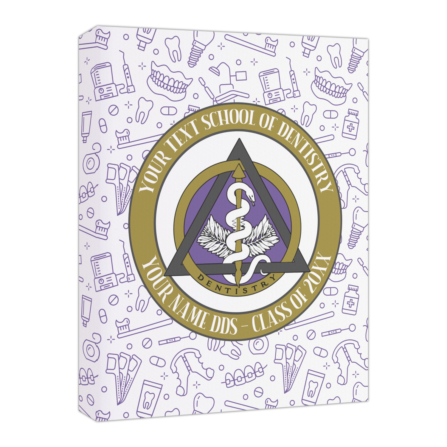 This design features the dental insignia (aka emblem, symbol, logo) at the center with personalization in a circle around the emblem.You can customize the name of the dental school, as well as the name of the dentist and the year they graduated.