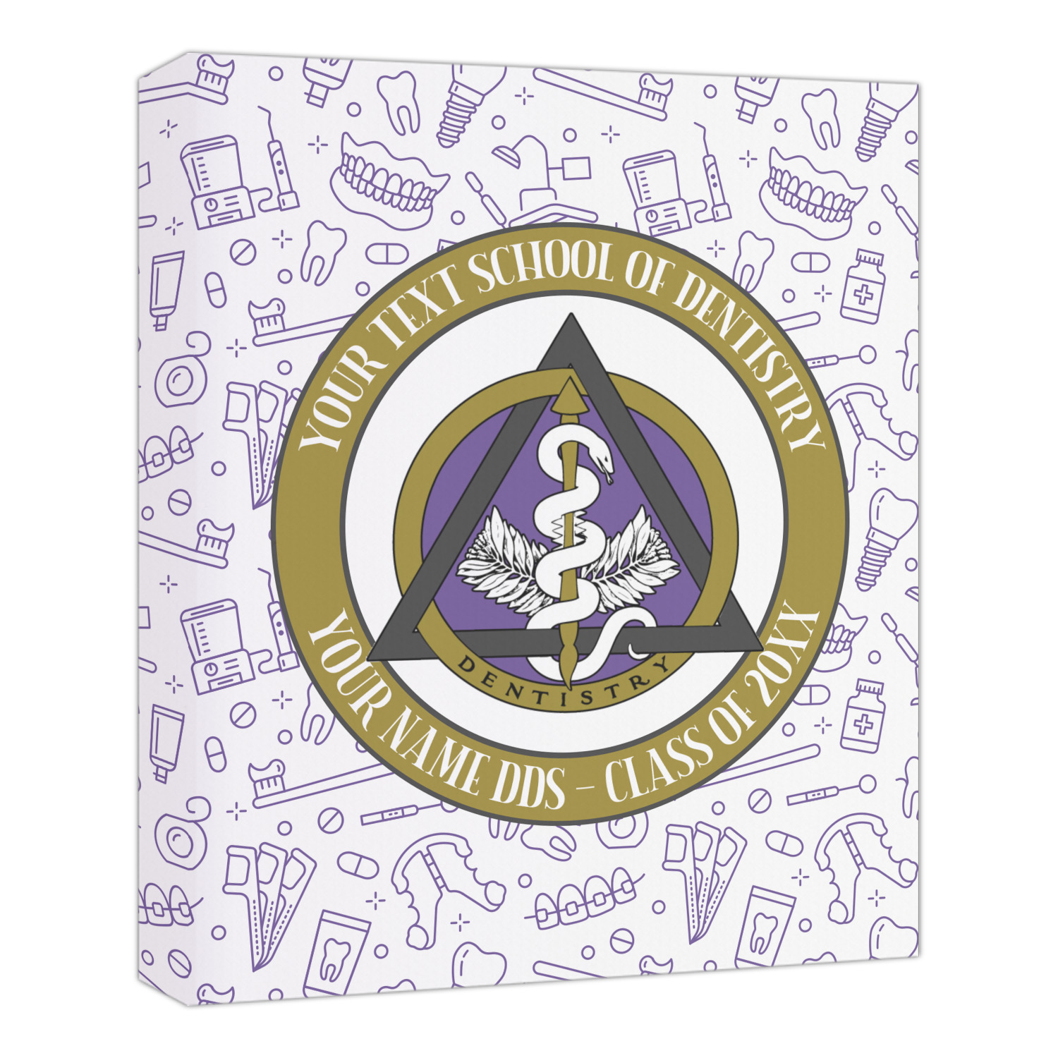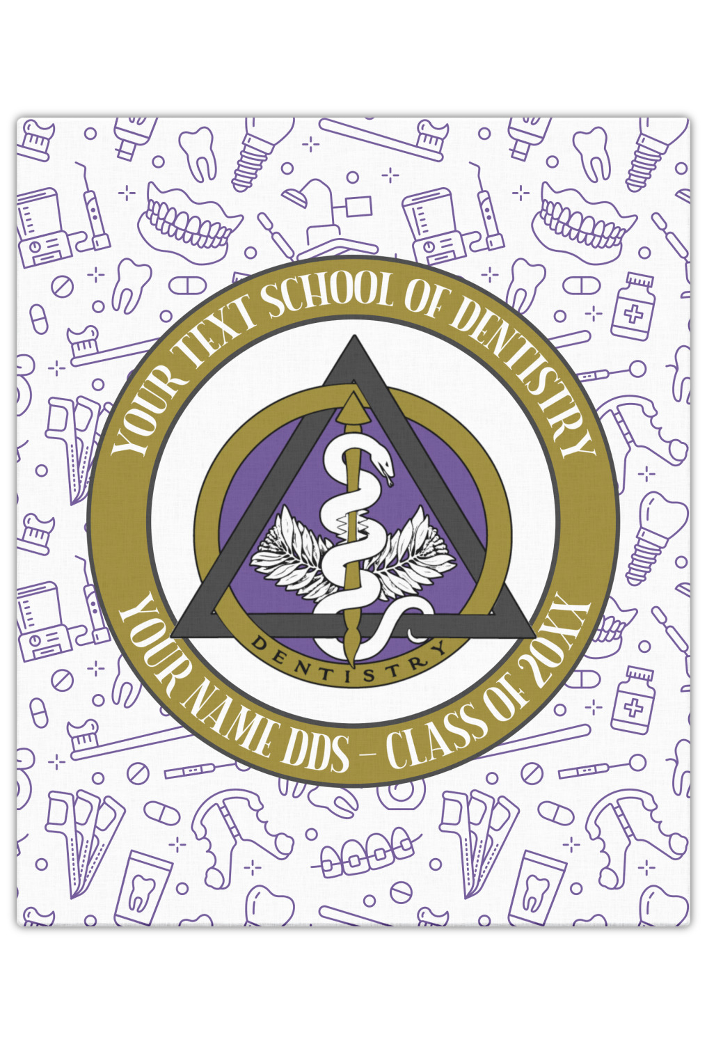 This design features the dental insignia (aka emblem, symbol, logo) at the center with personalization in a circle around the emblem.You can customize the name of the dental school, as well as the name of the dentist and the year they graduated.