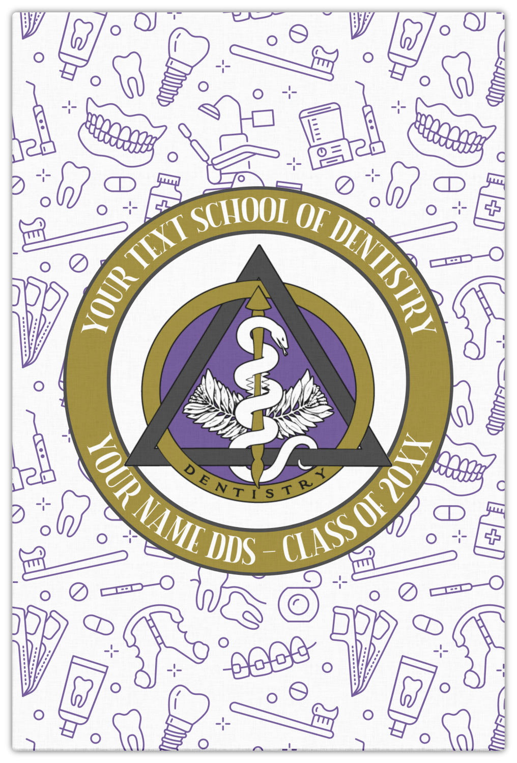 This design features the dental insignia (aka emblem, symbol, logo) at the center with personalization in a circle around the emblem.You can customize the name of the dental school, as well as the name of the dentist and the year they graduated.
