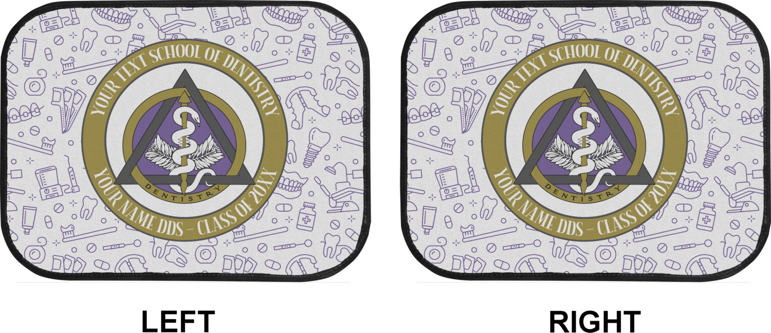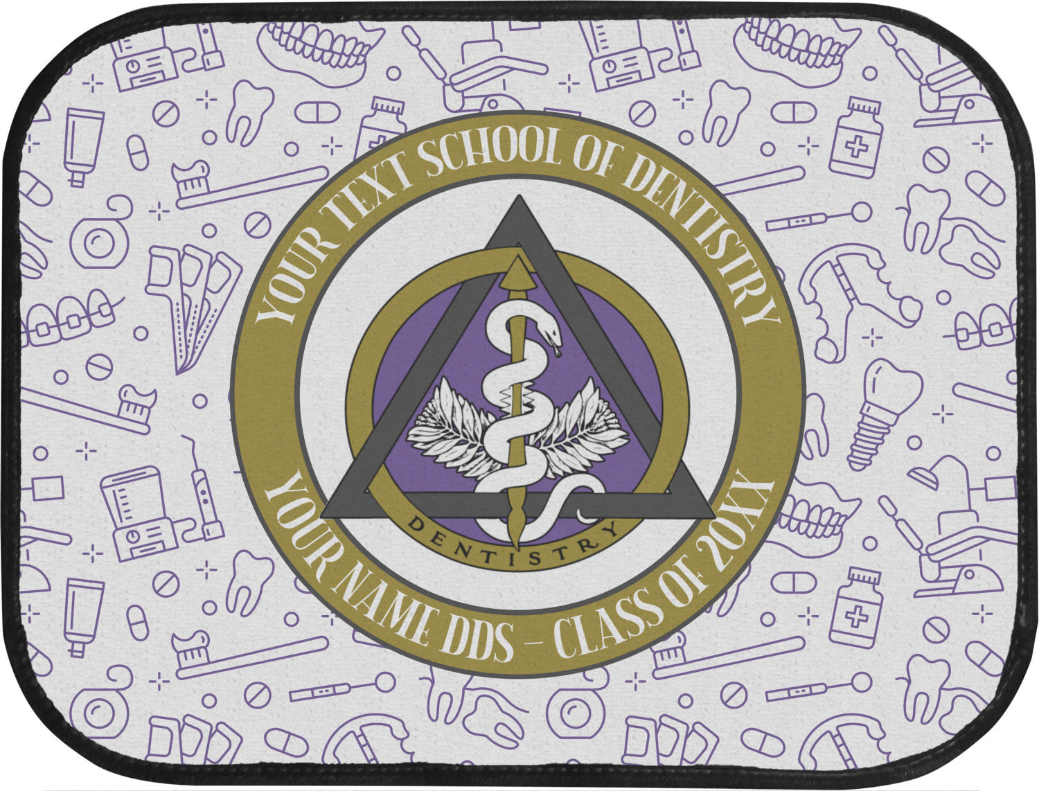 This design features the dental insignia (aka emblem, symbol, logo) at the center with personalization in a circle around the emblem.You can customize the name of the dental school, as well as the name of the dentist and the year they graduated.