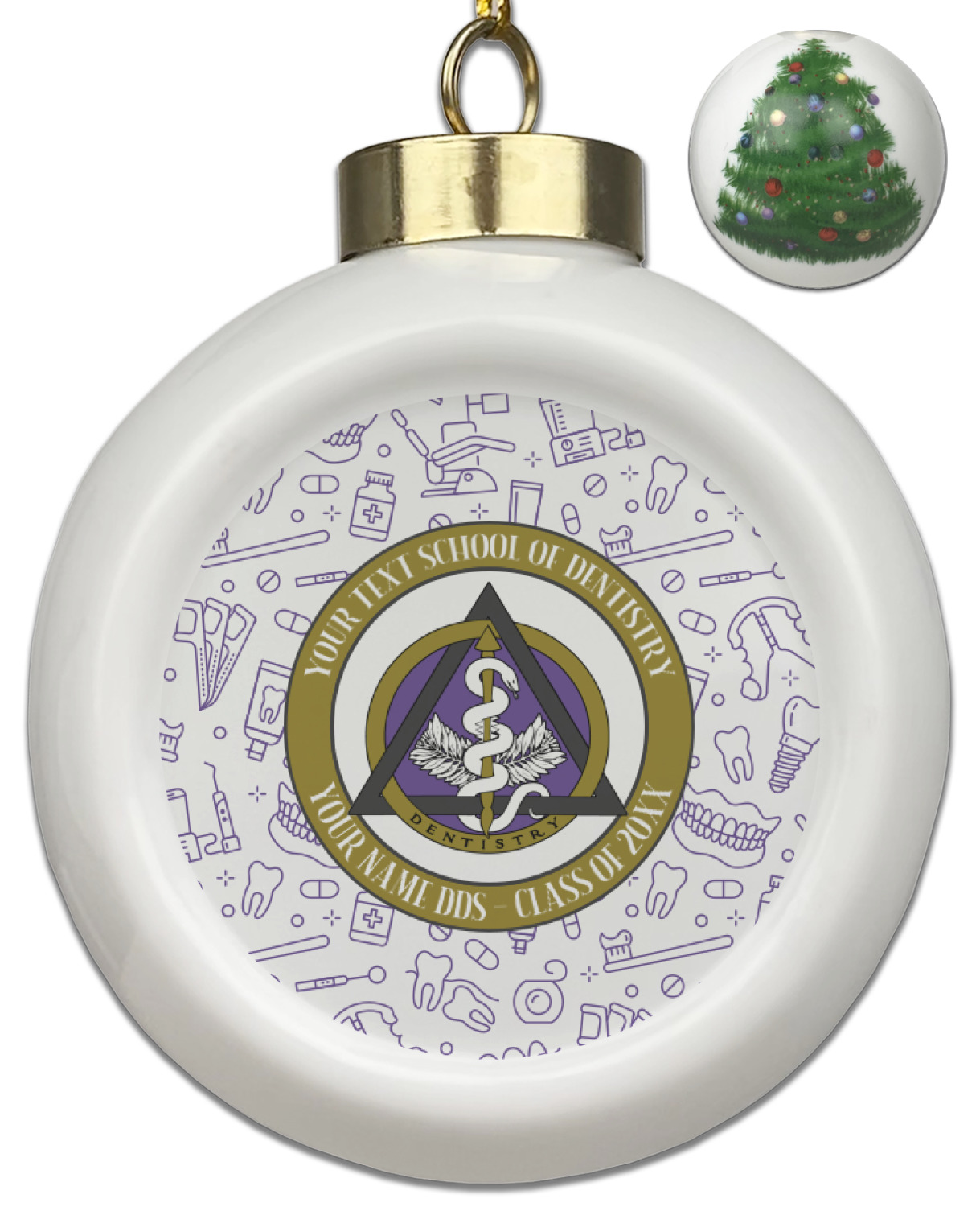 This design features the dental insignia (aka emblem, symbol, logo) at the center with personalization in a circle around the emblem.You can customize the name of the dental school, as well as the name of the dentist and the year they graduated.