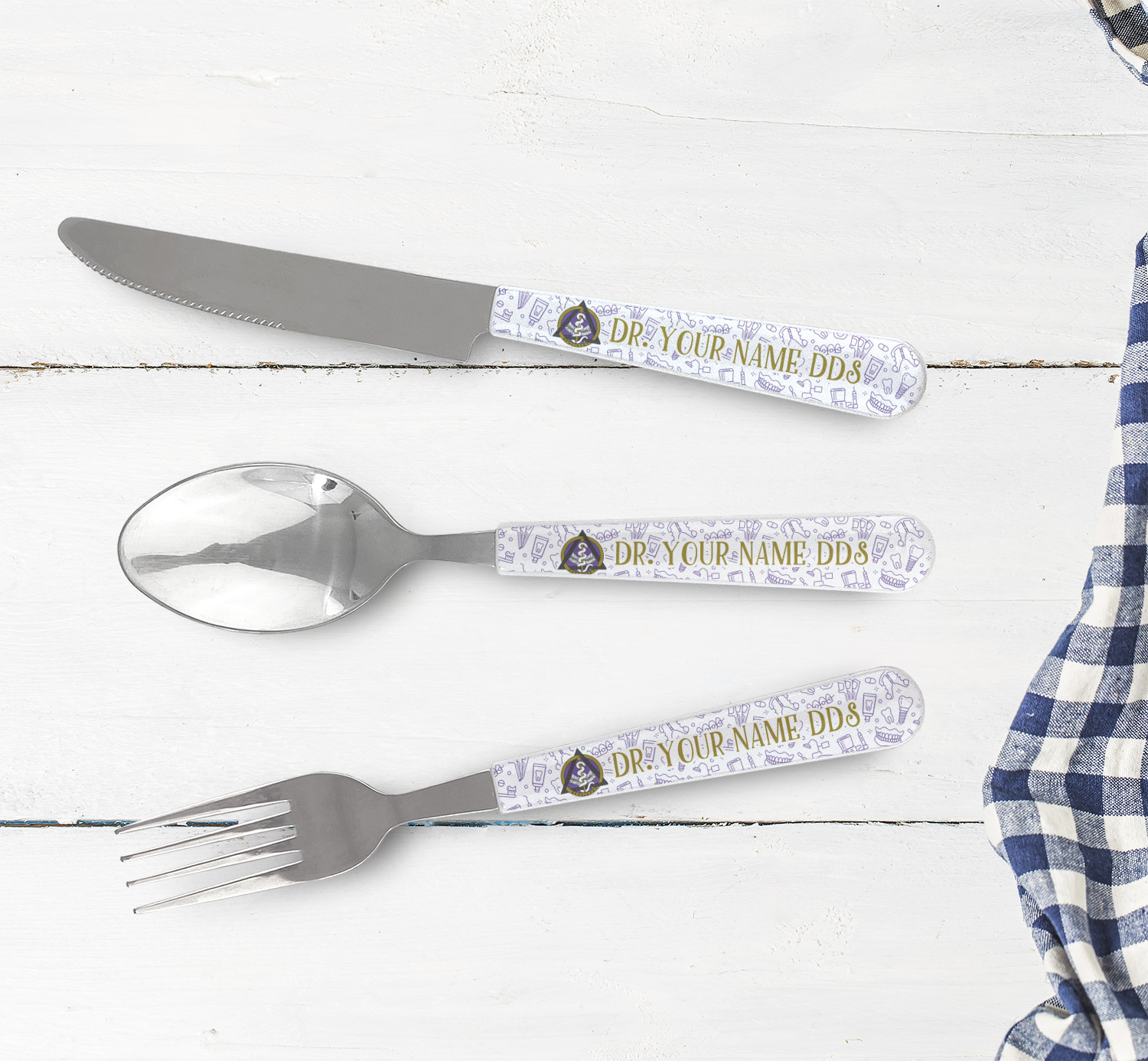 One of those items we all use on a daily basis and never give it much thought - cutlery. Having your own customized set of cutlery adds that special touch. A great addition to our custom plates and drinking pint glasses, this flatware set can be made in the same patterns to match.