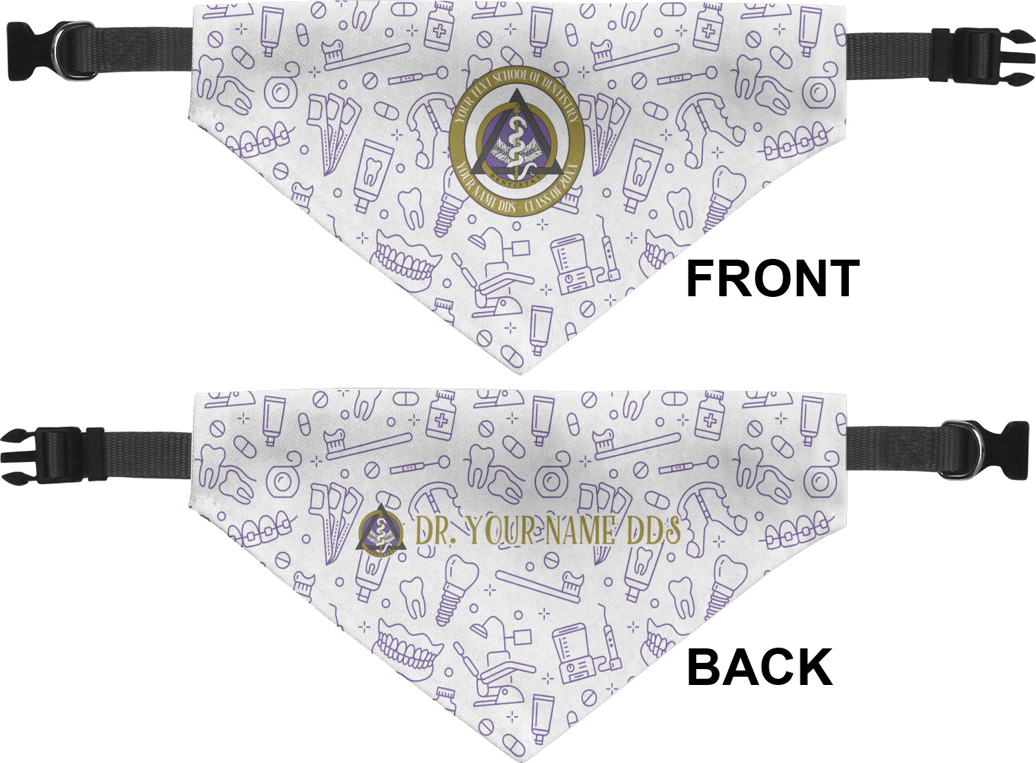 This design features the dental insignia (aka emblem, symbol, logo) at the center with personalization in a circle around the emblem.You can customize the name of the dental school, as well as the name of the dentist and the year they graduated.
