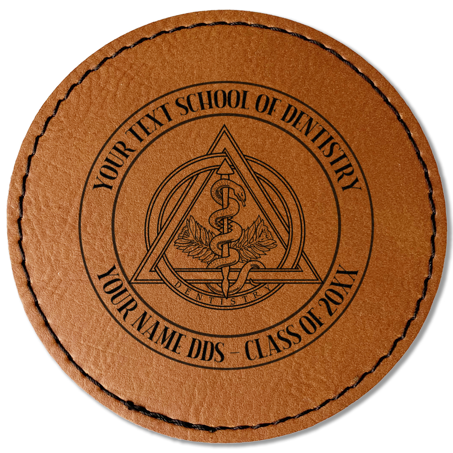 This design features the dental insignia (aka emblem, symbol, logo) at the center with personalization in a circle around the emblem.You can customize the name of the dental school, as well as the name of the dentist and the year they graduated.