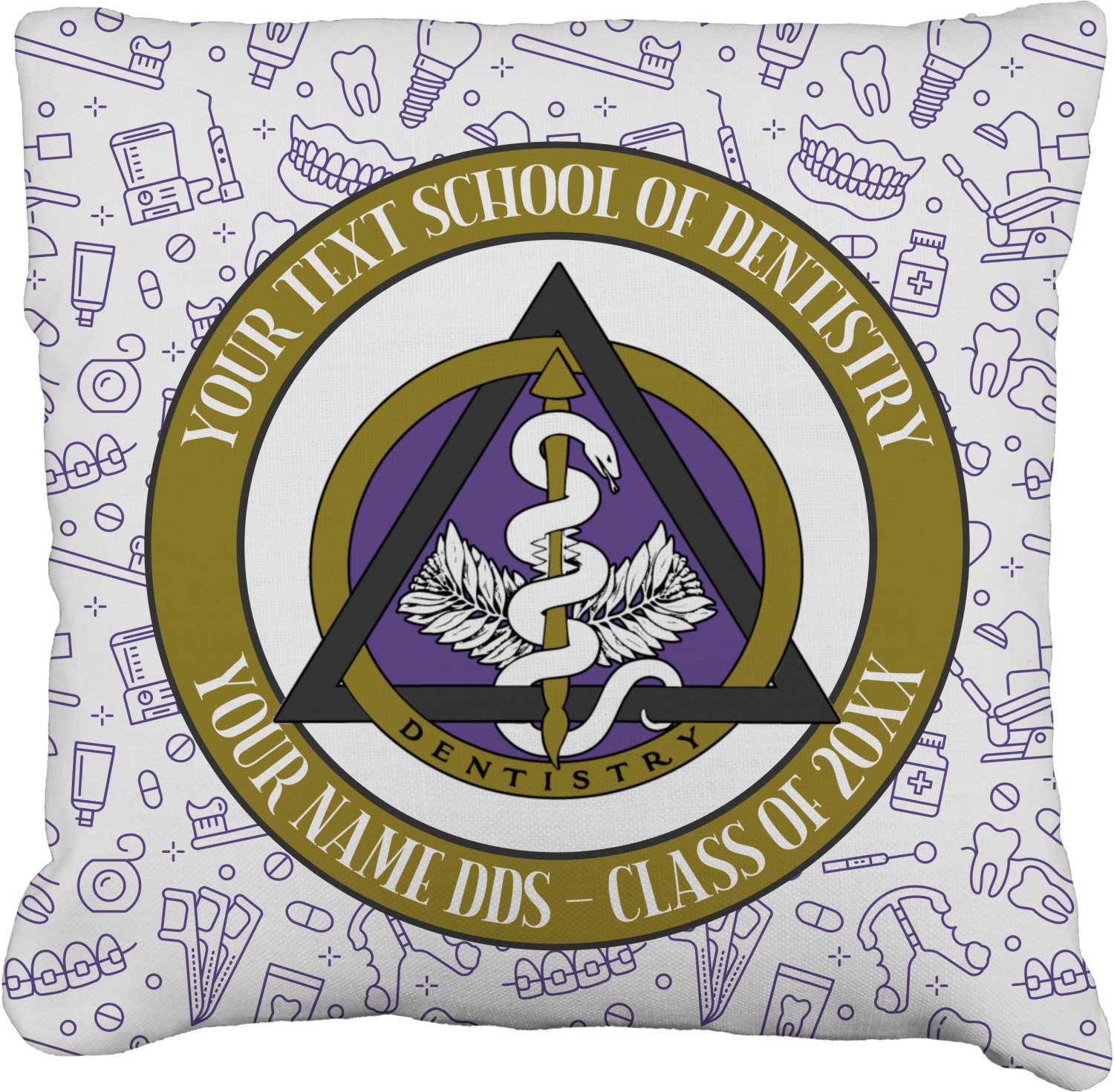 This design features the dental insignia (aka emblem, symbol, logo) at the center with personalization in a circle around the emblem.You can customize the name of the dental school, as well as the name of the dentist and the year they graduated.