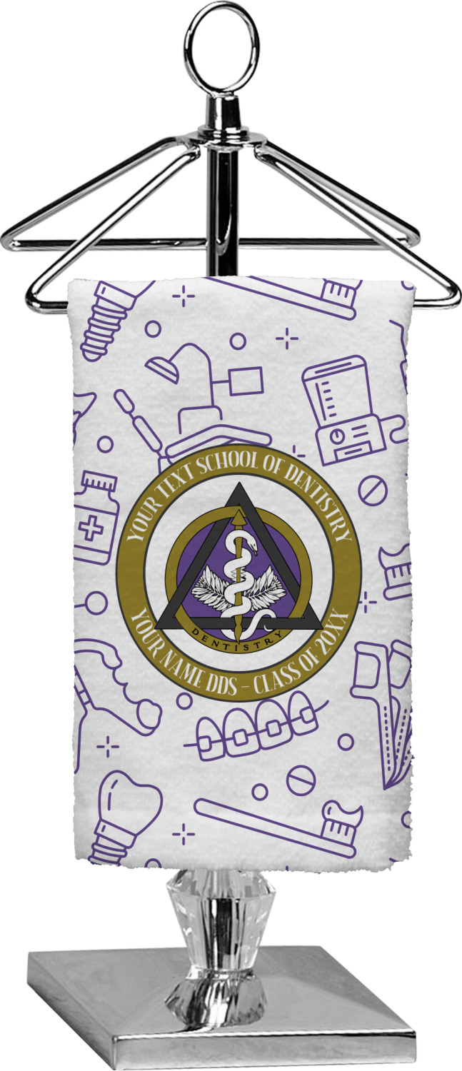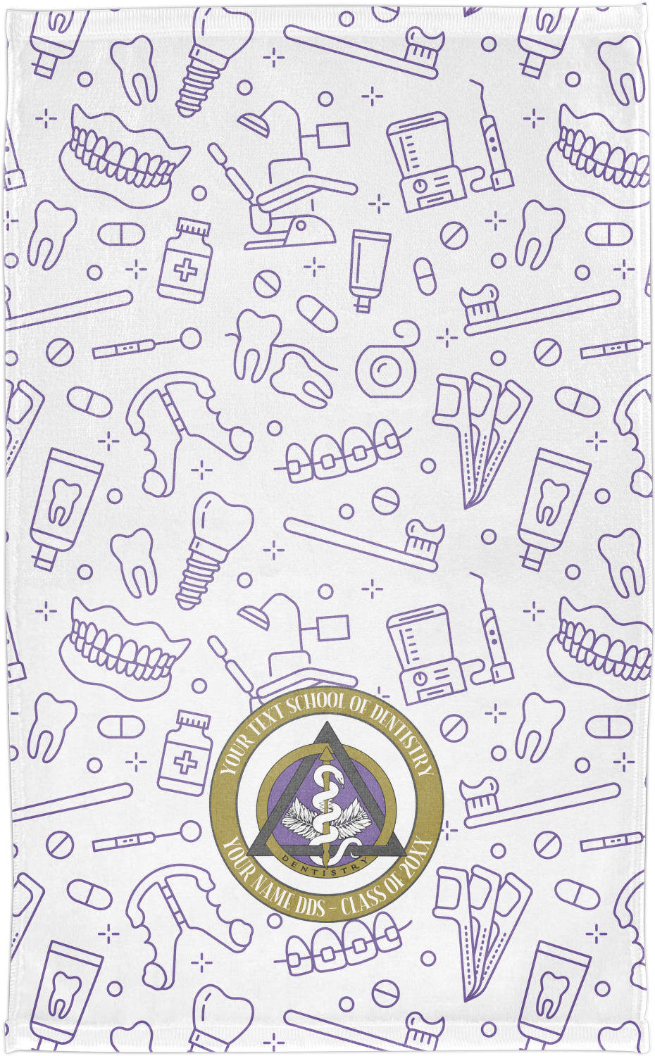 This design features the dental insignia (aka emblem, symbol, logo) at the center with personalization in a circle around the emblem.You can customize the name of the dental school, as well as the name of the dentist and the year they graduated.