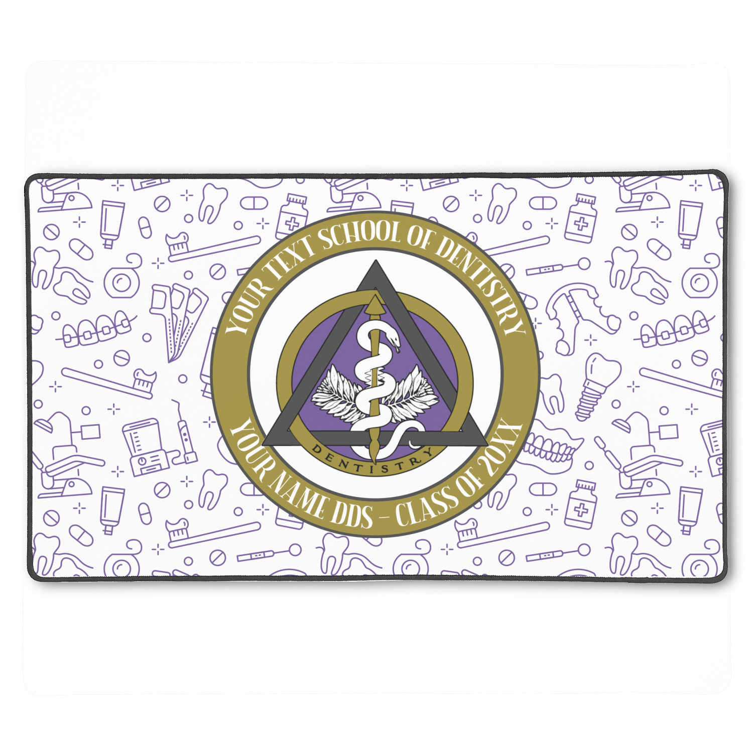 This design features the dental insignia (aka emblem, symbol, logo) at the center with personalization in a circle around the emblem.You can customize the name of the dental school, as well as the name of the dentist and the year they graduated.