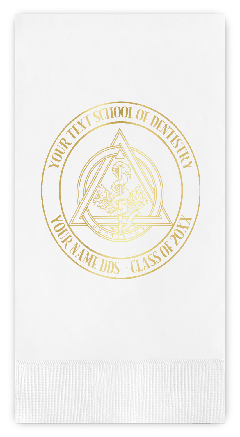 This design features the dental insignia (aka emblem, symbol, logo) at the center with personalization in a circle around the emblem.You can customize the name of the dental school, as well as the name of the dentist and the year they graduated.
