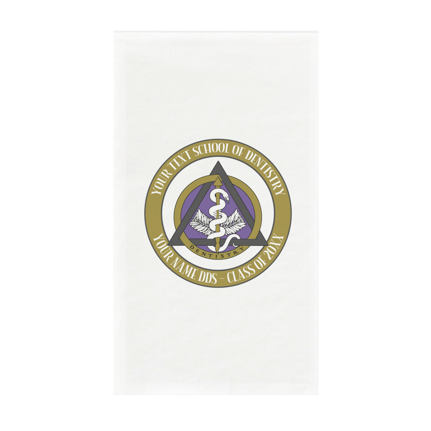 This design features the dental insignia (aka emblem, symbol, logo) at the center with personalization in a circle around the emblem.You can customize the name of the dental school, as well as the name of the dentist and the year they graduated.