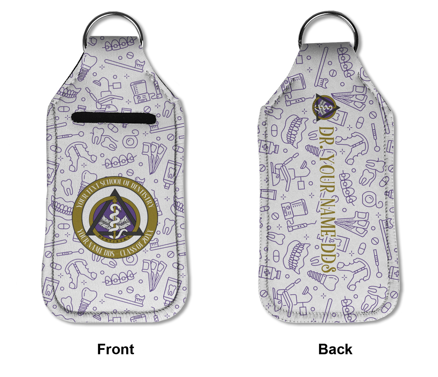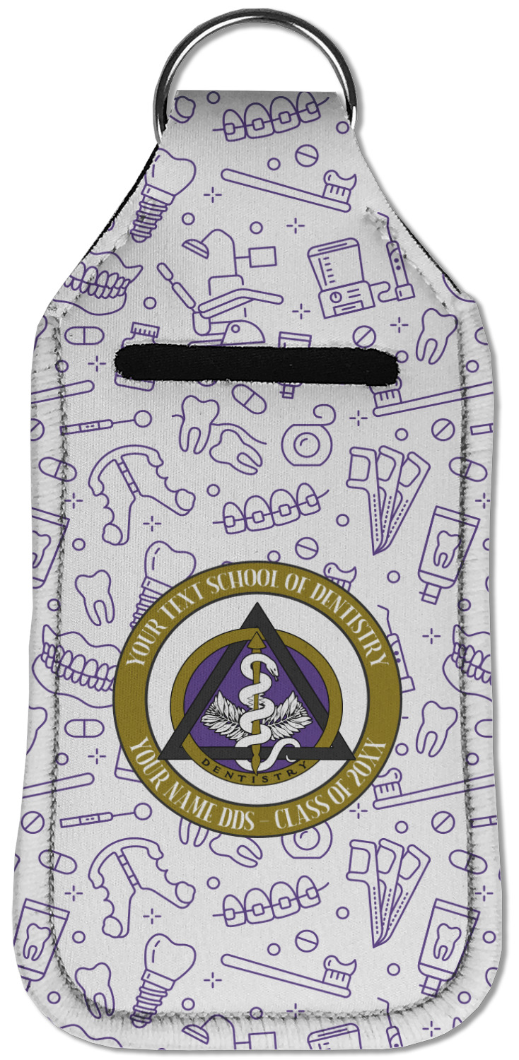 Each hand sanitizer holder comes with its own empty travel-sized, refillable hand sanitizer sure to fit snug in your customized sanitizer case! Our hand sanitizer cases are a durable, yet soft neoprene material sure to last any daily activities or travel agenda. Customize and personalize a hand sanitizer bottle holder with one of our two sizes - small (4.25" x 2.25") or large (5.5" x 2.5"). Each travel sanitizer holder comes with a keyring for attachment on bags, keys, or more!