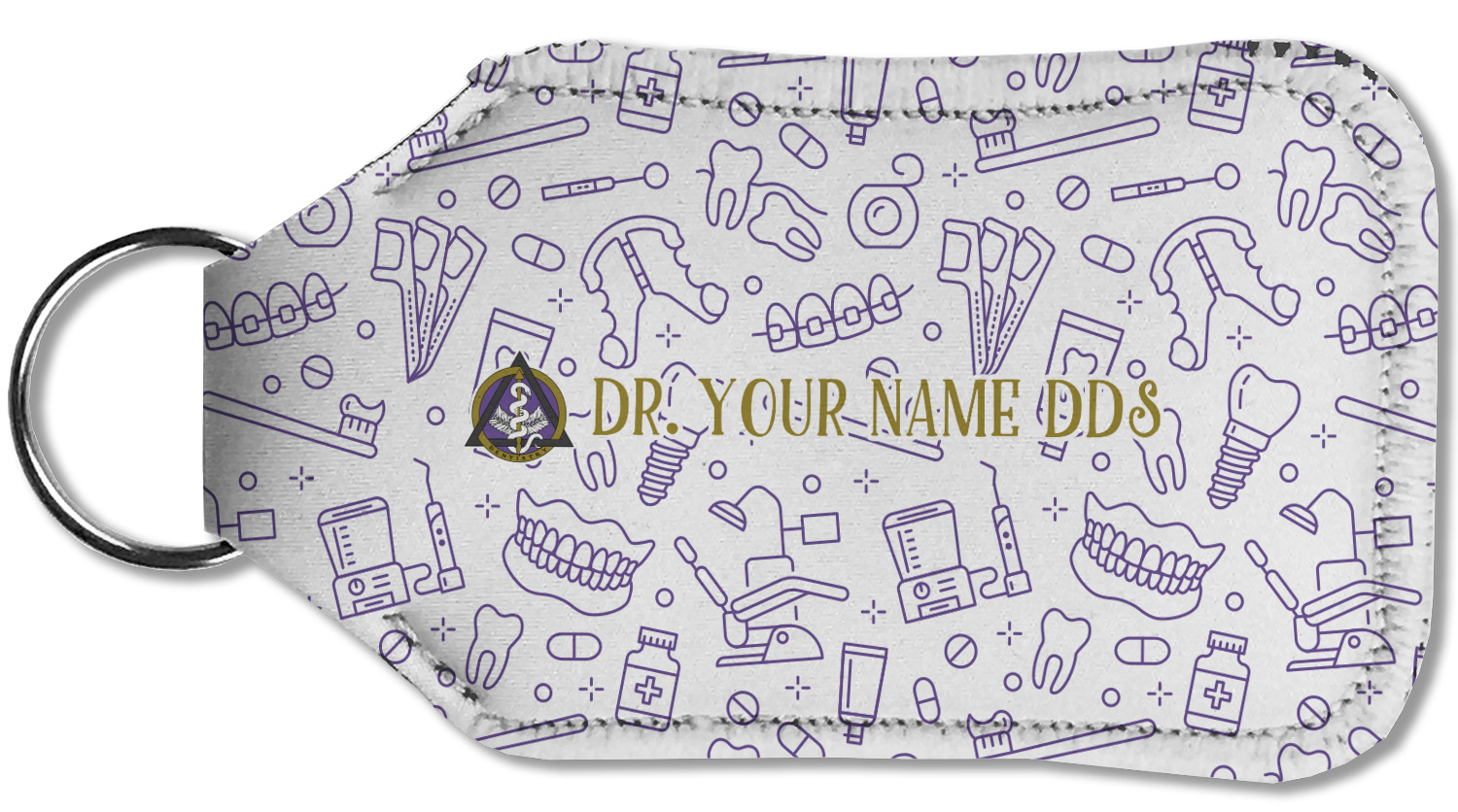 Each hand sanitizer holder comes with its own empty travel-sized, refillable hand sanitizer sure to fit snug in your customized sanitizer case! Our hand sanitizer cases are a durable, yet soft neoprene material sure to last any daily activities or travel agenda. Customize and personalize a hand sanitizer bottle holder with one of our two sizes - small (4.25" x 2.25") or large (5.5" x 2.5"). Each travel sanitizer holder comes with a keyring for attachment on bags, keys, or more!