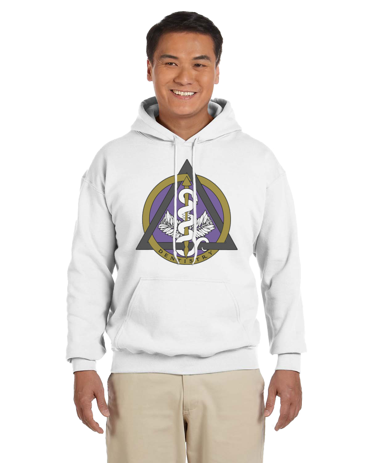 On the periphery of the emblem, you will notice two Greek letters, Delta ( Δ ) and Omicron ( Ο ). Delta represents dentistry, and Omicron is a symbol for odont, or tooth. The word “Dentistry” is inscribed upon the bottom half of the circle.