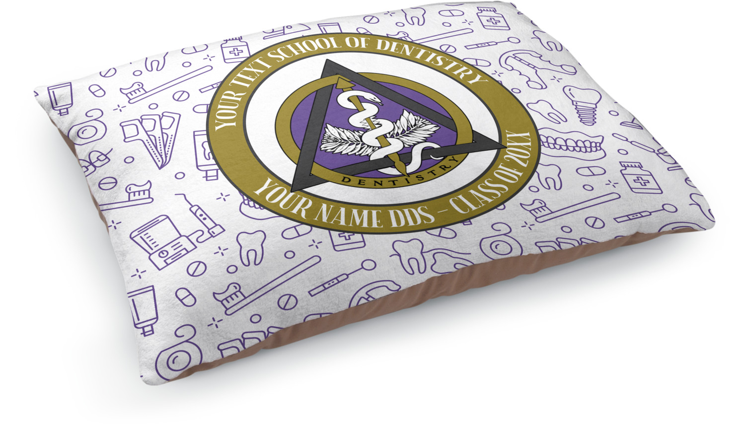 This design features the dental insignia (aka emblem, symbol, logo) at the center with personalization in a circle around the emblem.You can customize the name of the dental school, as well as the name of the dentist and the year they graduated.