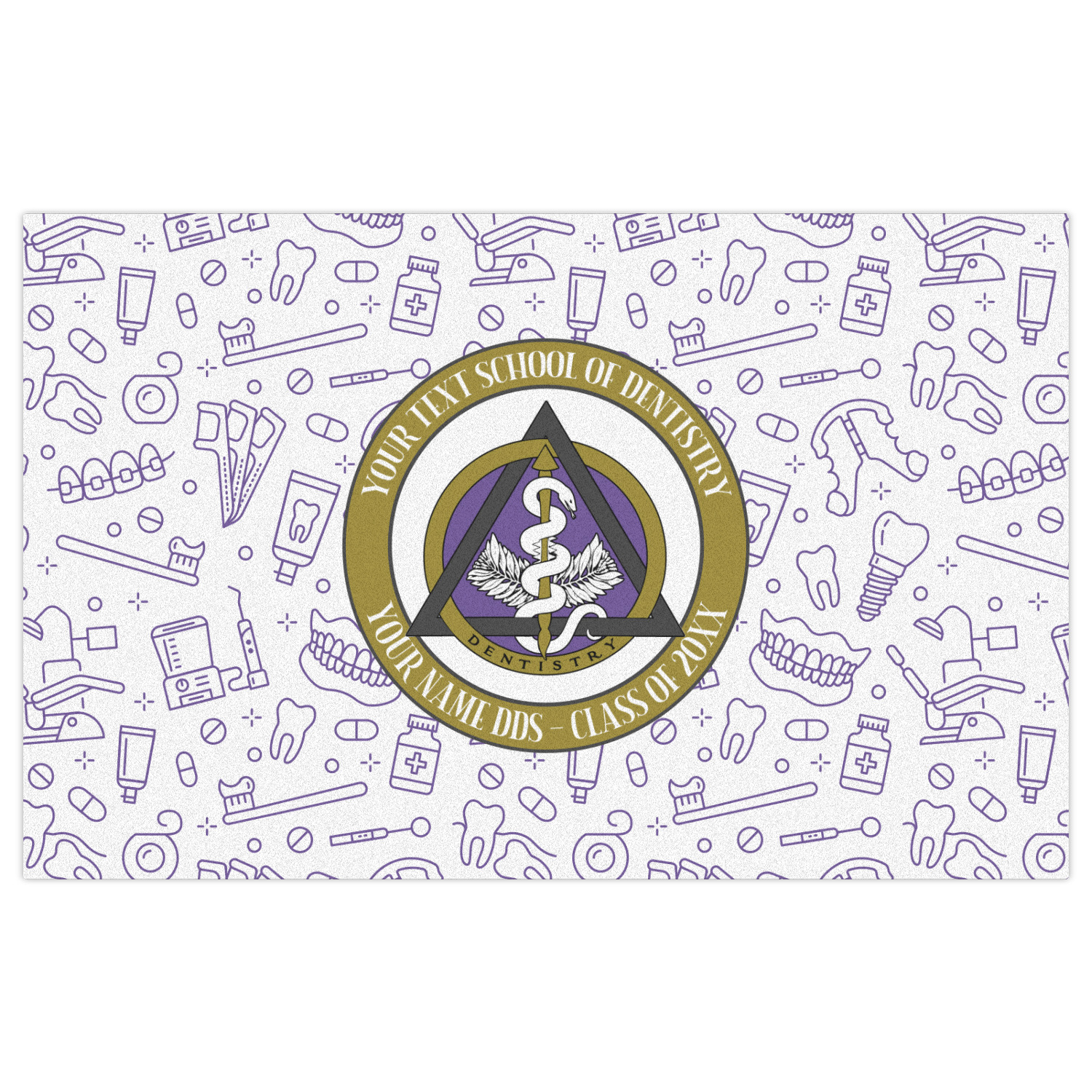This design features the dental insignia (aka emblem, symbol, logo) at the center with personalization in a circle around the emblem.You can customize the name of the dental school, as well as the name of the dentist and the year they graduated.