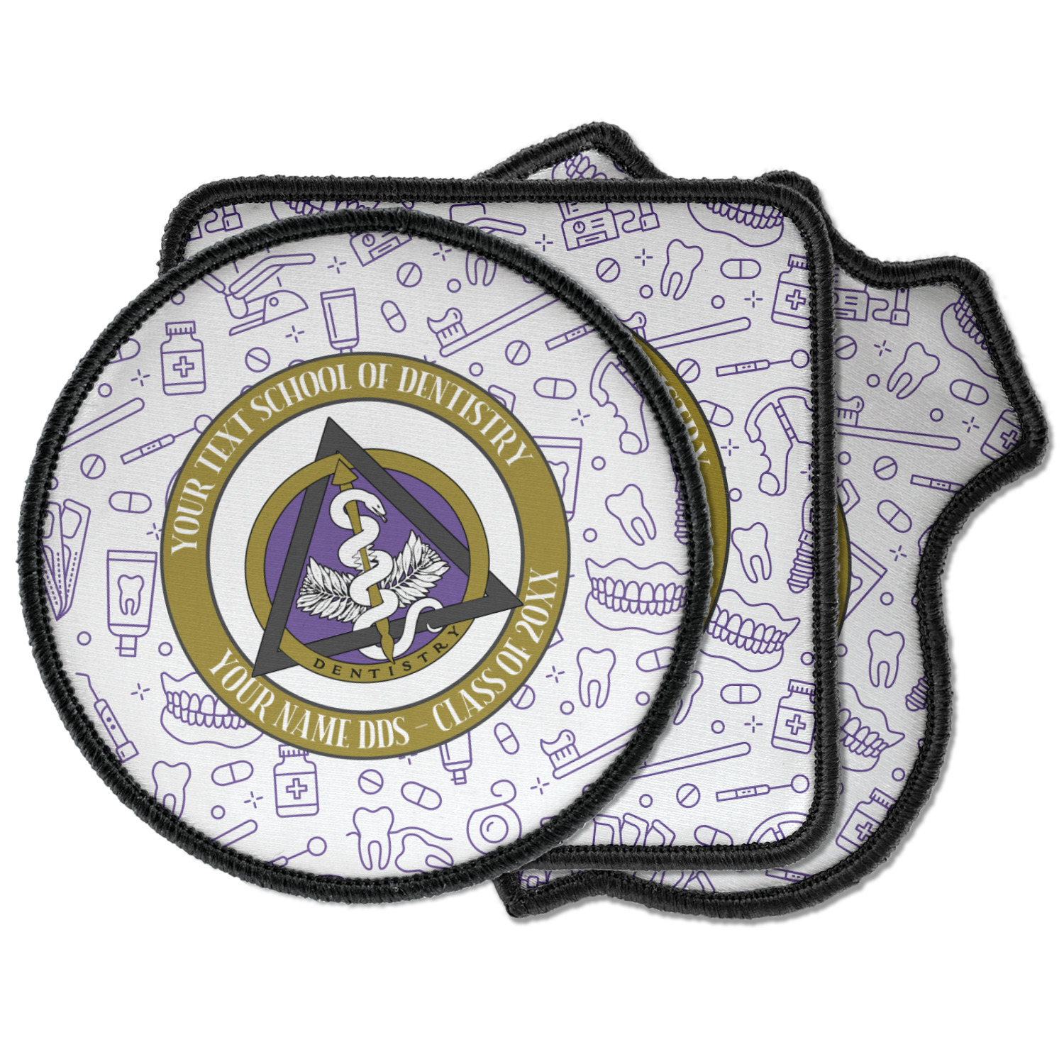 This design features the dental insignia (aka emblem, symbol, logo) at the center with personalization in a circle around the emblem.You can customize the name of the dental school, as well as the name of the dentist and the year they graduated.
