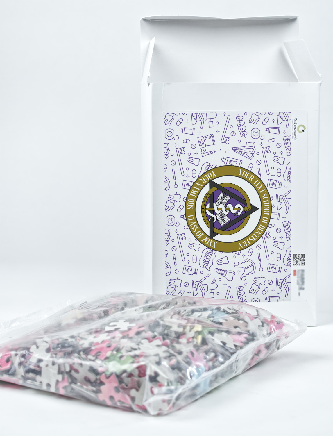 You can also upload your logo or art that you or your kids drew. To create more challenging jigsaw puzzles, you can create a pattern from with your logo or artwork. You can also add other elements such as text or personalization.