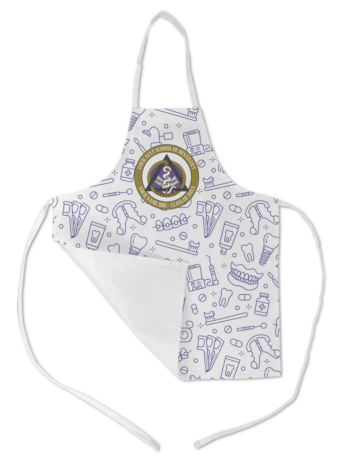 This design features the dental insignia (aka emblem, symbol, logo) at the center with personalization in a circle around the emblem.You can customize the name of the dental school, as well as the name of the dentist and the year they graduated.