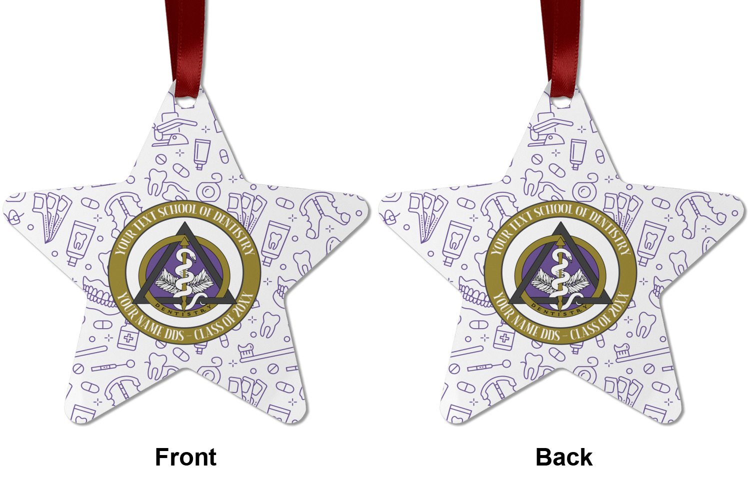 This design features the dental insignia (aka emblem, symbol, logo) at the center with personalization in a circle around the emblem.You can customize the name of the dental school, as well as the name of the dentist and the year they graduated.