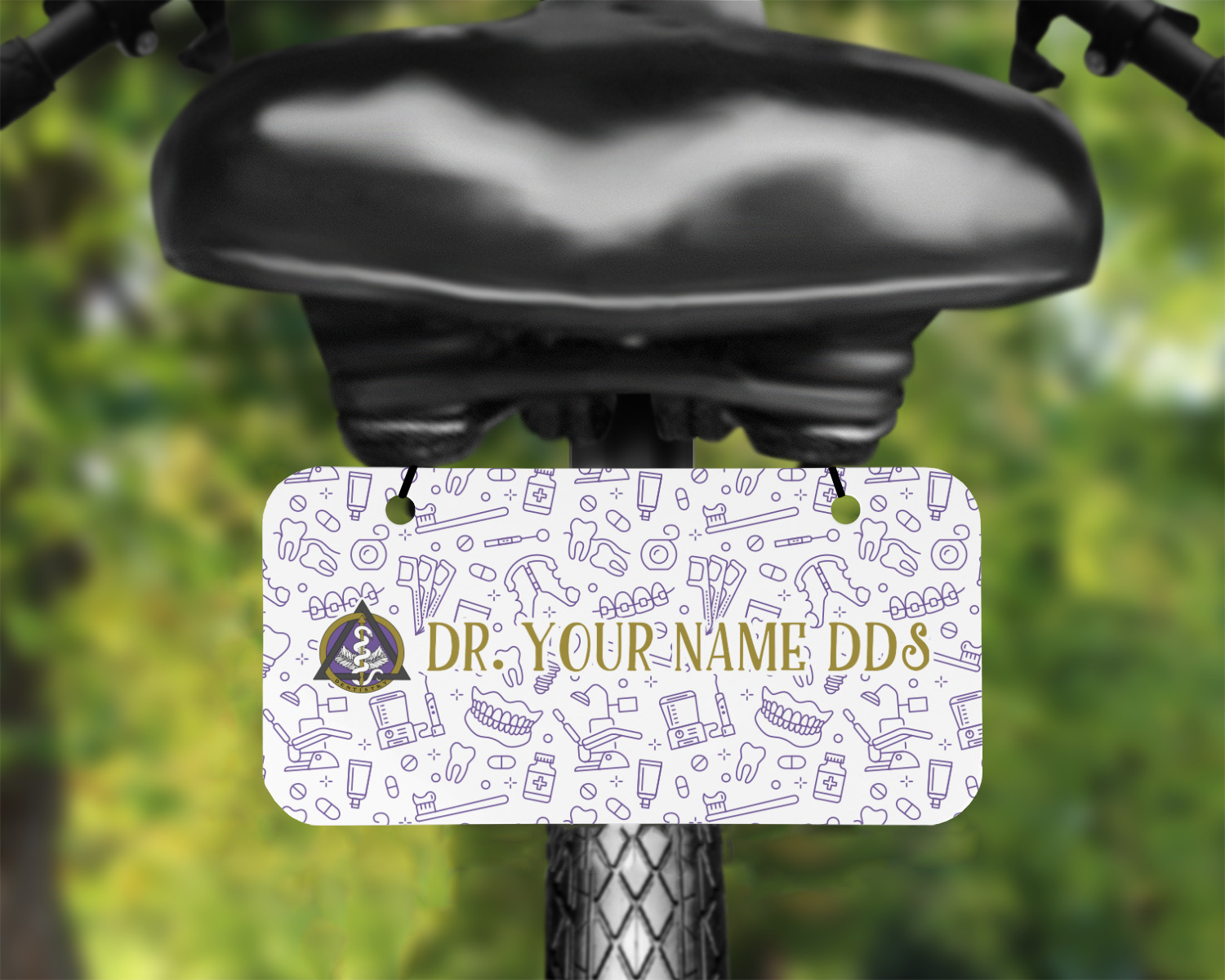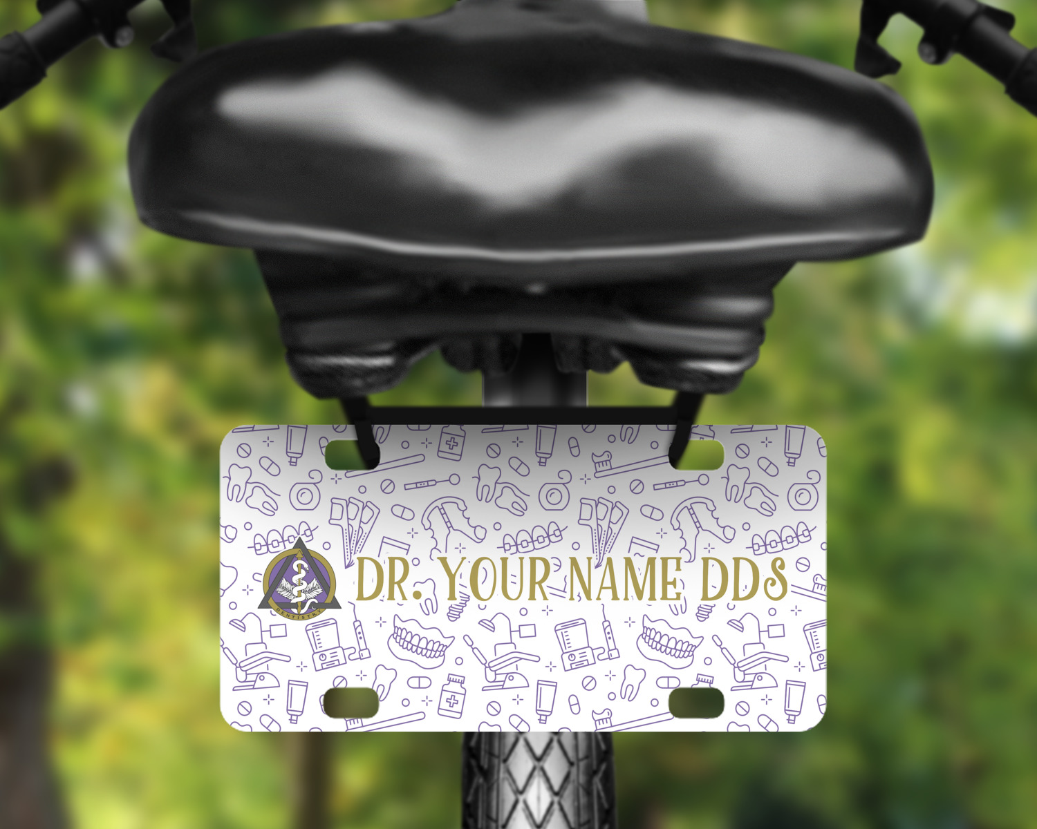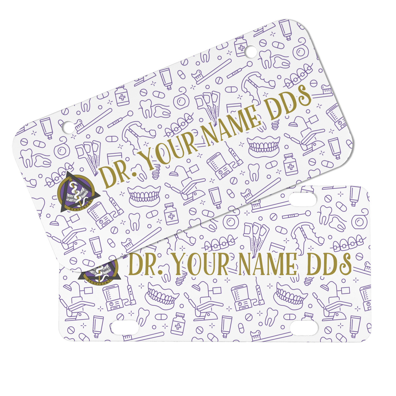 This design features the dental insignia (aka emblem, symbol, logo) at the center with personalization in a circle around the emblem.You can customize the name of the dental school, as well as the name of the dentist and the year they graduated.