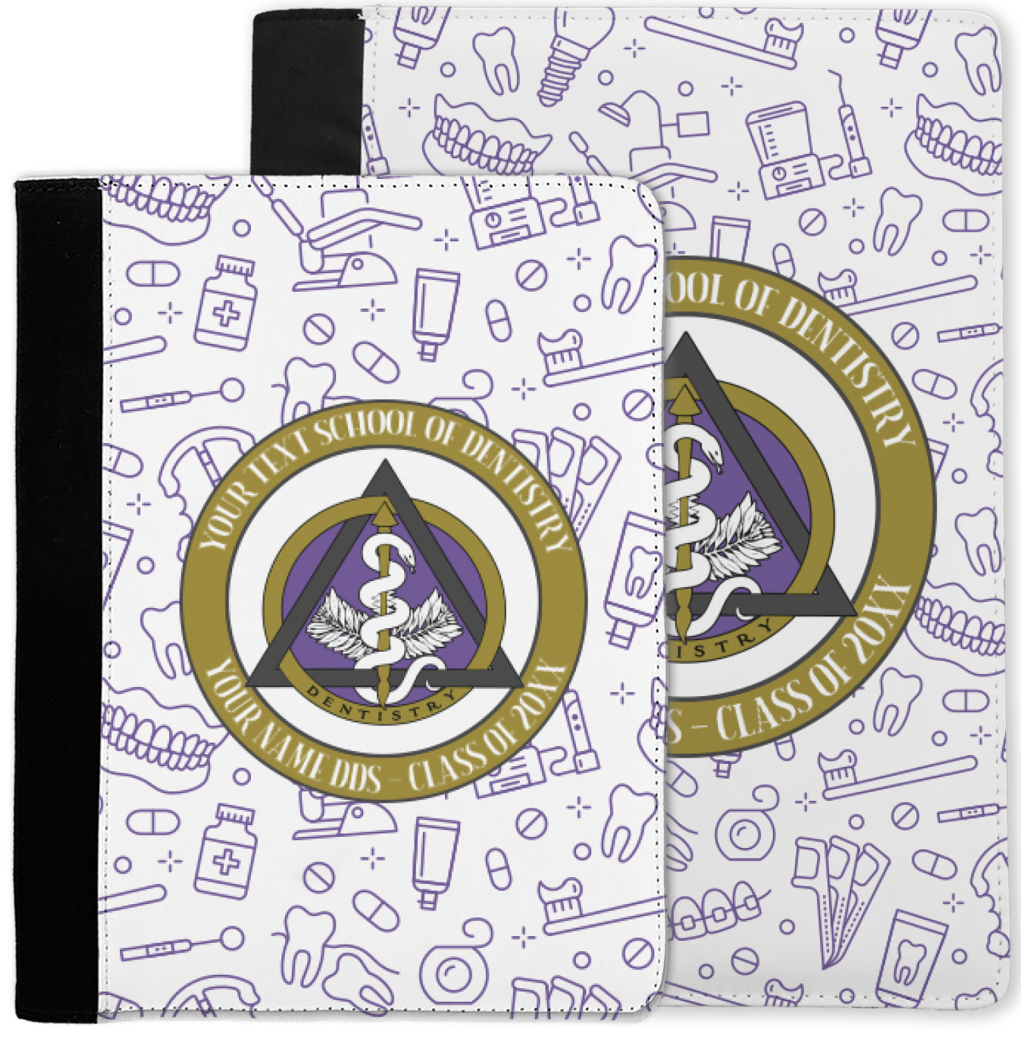 This design features the dental insignia (aka emblem, symbol, logo) at the center with personalization in a circle around the emblem.You can customize the name of the dental school, as well as the name of the dentist and the year they graduated.