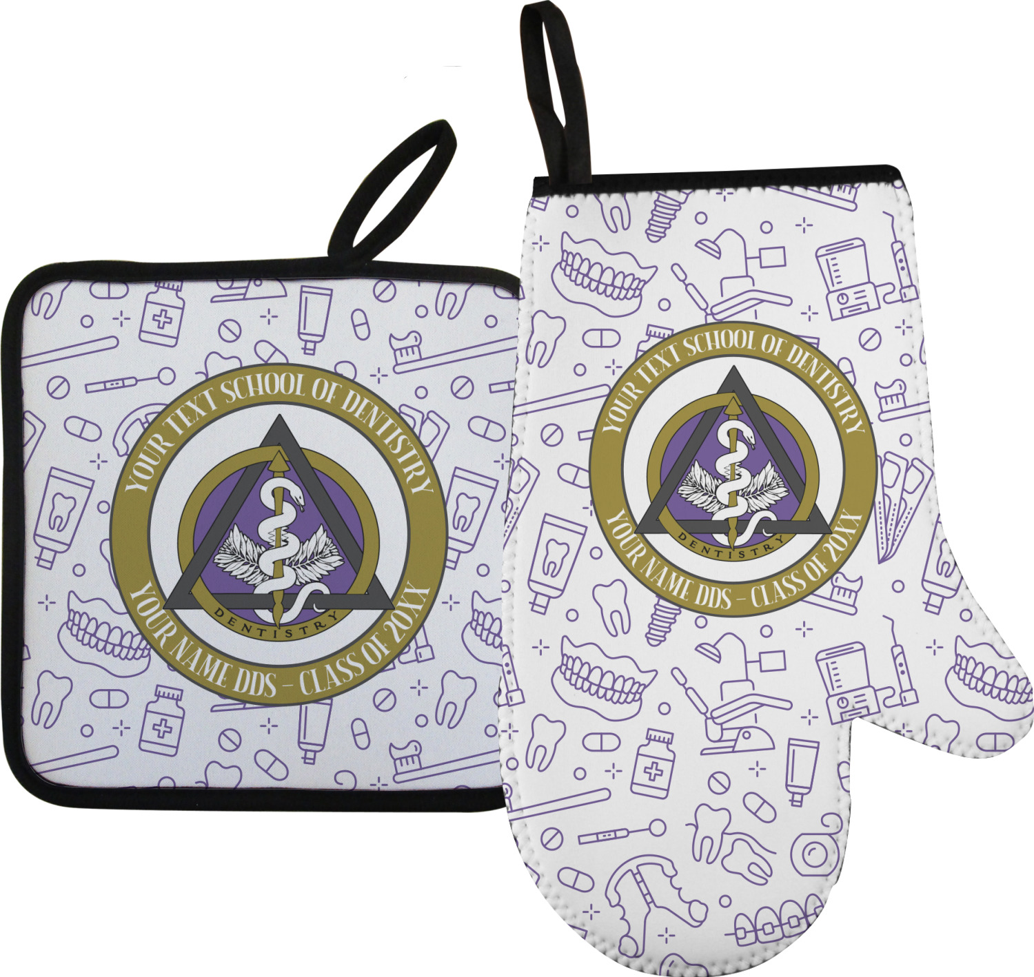 This design features the dental insignia (aka emblem, symbol, logo) at the center with personalization in a circle around the emblem.You can customize the name of the dental school, as well as the name of the dentist and the year they graduated.