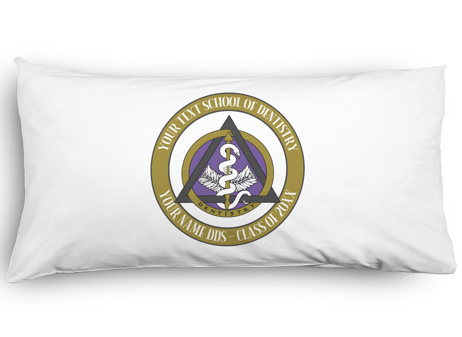 This design features the dental insignia (aka emblem, symbol, logo) at the center with personalization in a circle around the emblem.You can customize the name of the dental school, as well as the name of the dentist and the year they graduated.