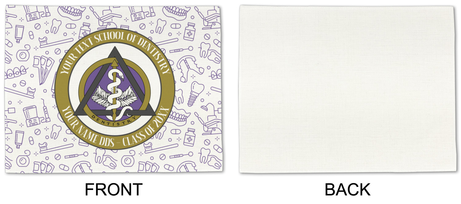 This design features the dental insignia (aka emblem, symbol, logo) at the center with personalization in a circle around the emblem.You can customize the name of the dental school, as well as the name of the dentist and the year they graduated.