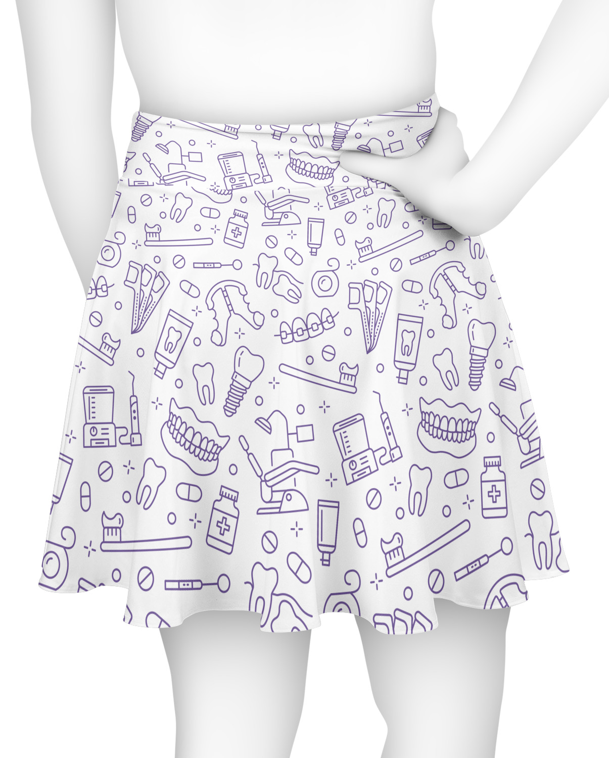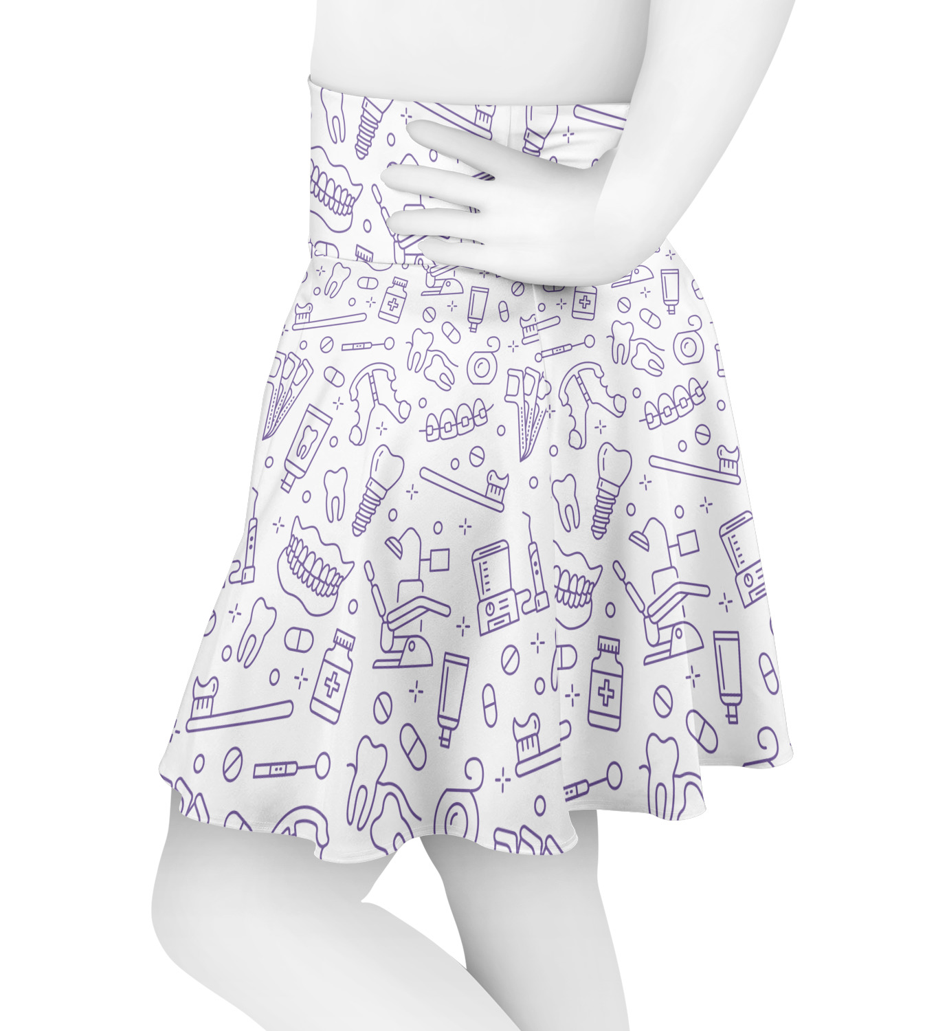 This skirt is a fun skater style that flares out (especially if you take a twirl in it!). The waist band is about 4" thick to wear as a high wasted skirt, but can easily be folded down to become a low waisted skirt. The band hugs you tight while the rest of the skirt is very flowy. The material is a comfortable, casual material that has a very slight sheen to it. It comes in 6 different sizes ranging from XS to 2XL. This skirt is perfect as a casual skirt, but can be easily dressed up to be a more formal skirt.
