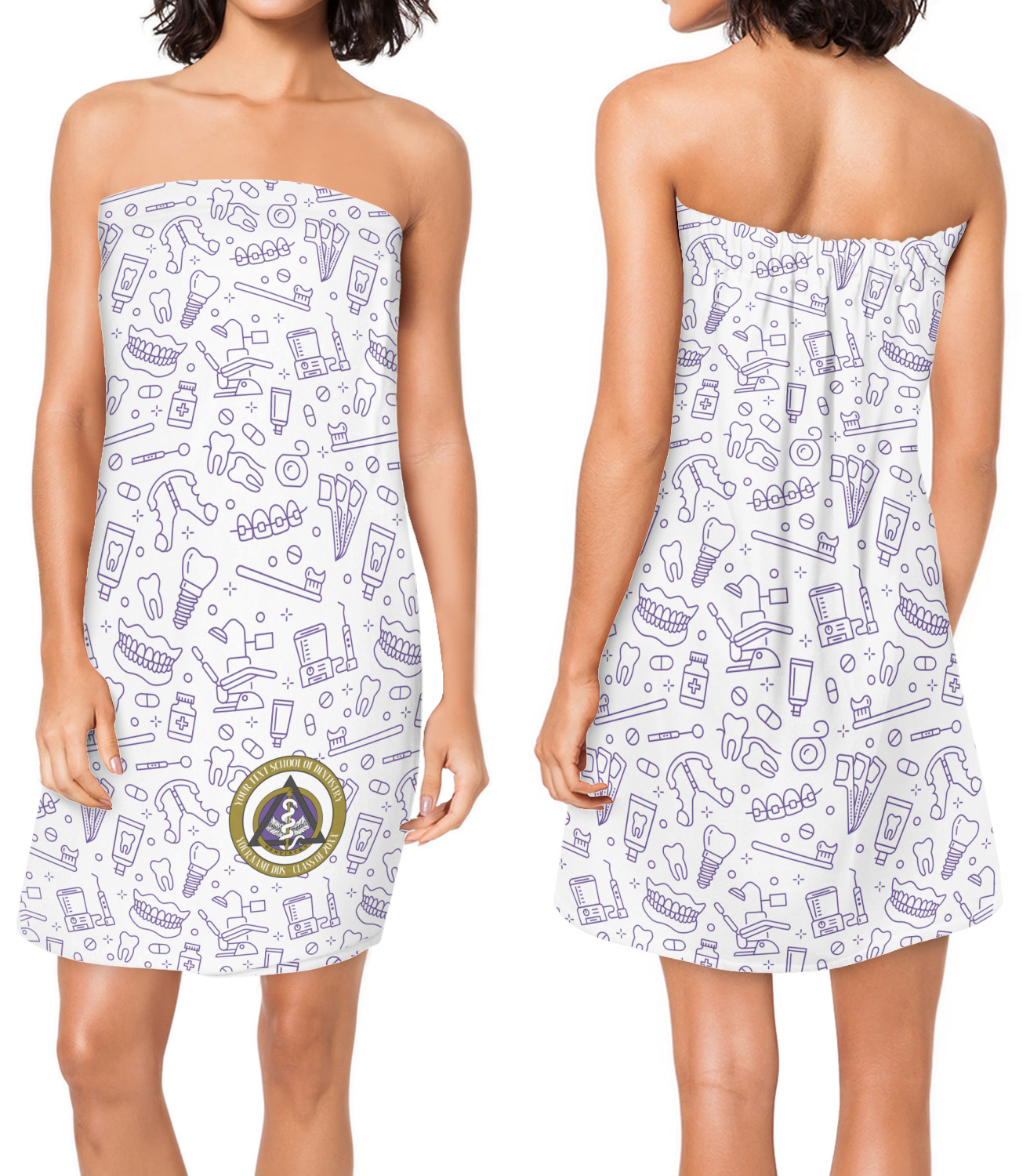 This design features the dental insignia (aka emblem, symbol, logo) at the center with personalization in a circle around the emblem.You can customize the name of the dental school, as well as the name of the dentist and the year they graduated.