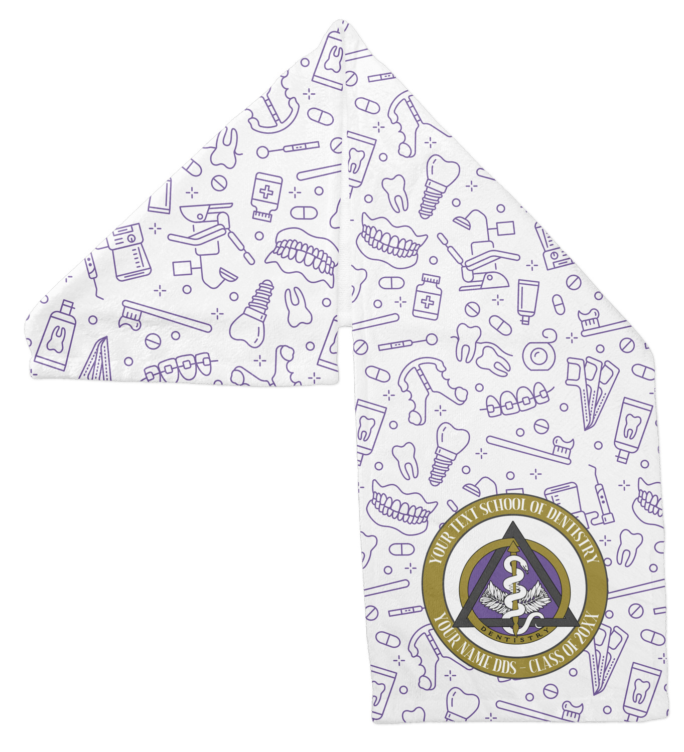 This design features the dental insignia (aka emblem, symbol, logo) at the center with personalization in a circle around the emblem.You can customize the name of the dental school, as well as the name of the dentist and the year they graduated.