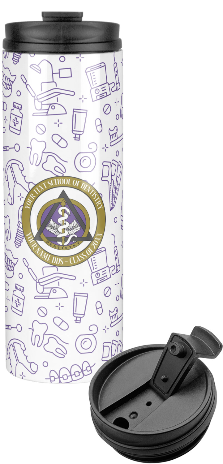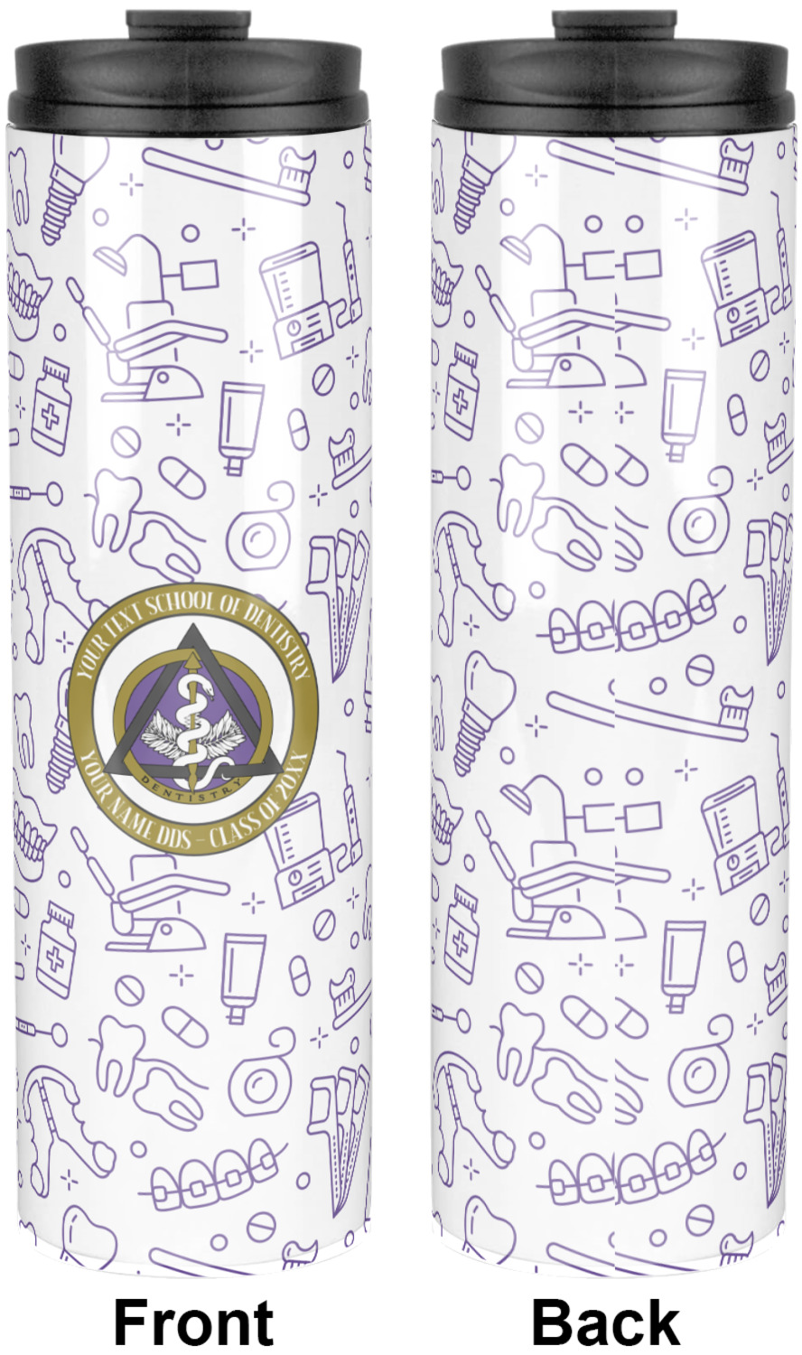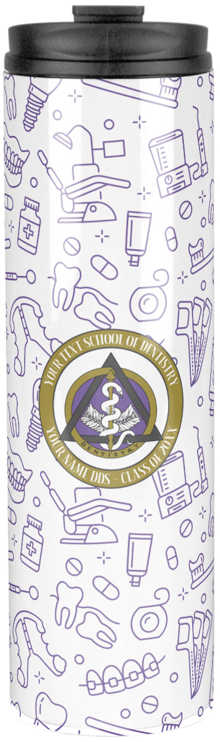 This design features the dental insignia (aka emblem, symbol, logo) at the center with personalization in a circle around the emblem.You can customize the name of the dental school, as well as the name of the dentist and the year they graduated.